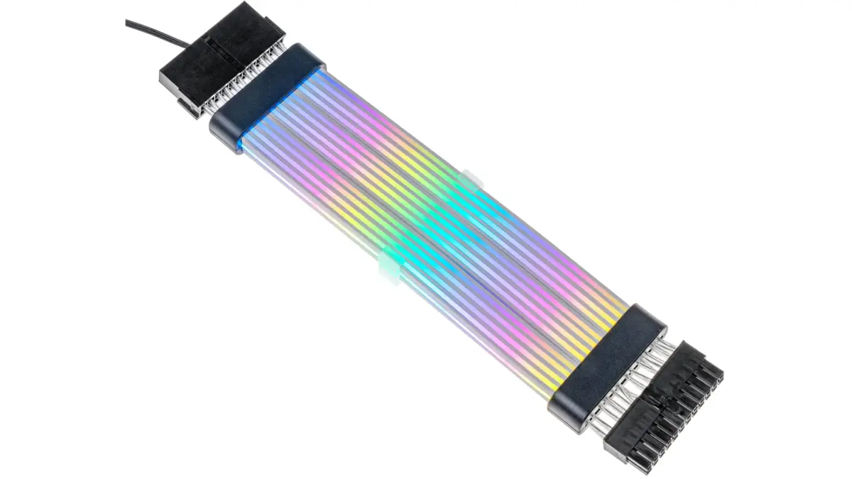 Qube RGB 24pin Female to Male, Black – компактный и универсальный кабель для подключения блока питания к материнской плате. Чёрная оплётка делает его малозаметным, но встроенная RGB-подсветка добавляет лёгкий декоративный акцент. Гибкость конструкции позволяет прокладывать его под любым углом, а длина подобрана так, чтобы исключить лишние изгибы. Это удобное решение для тех, кто ценит чистый кабель-менеджмент и аккуратную укладку проводов.
