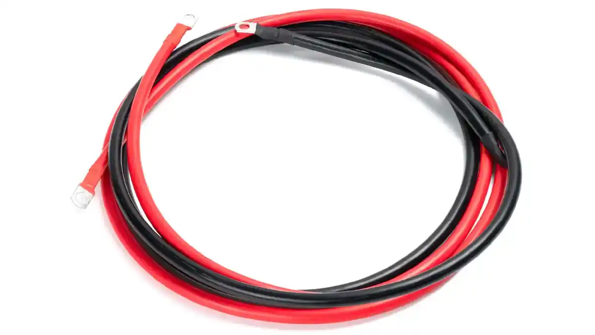 Первый вариант – кабель для инверторов с сечением 25 мм² и длиной 2 м. Он подходит для мощных систем, где ток высок и требуется минимальное падение напряжения. Плотная медная жила обеспечивает эффективную передачу энергии, а кольцевые клеммы позволяют быстро подключить кабель к инвертору или аккумулятору. Красный цвет помогает визуально выделить положительный полюс, что снижает вероятность ошибок при монтаже. Такой провод особенно полезен в среде, где токи достигают значительных величин: в системах солнечных панелей, мобильных электростанциях или автономных комплектах питания.