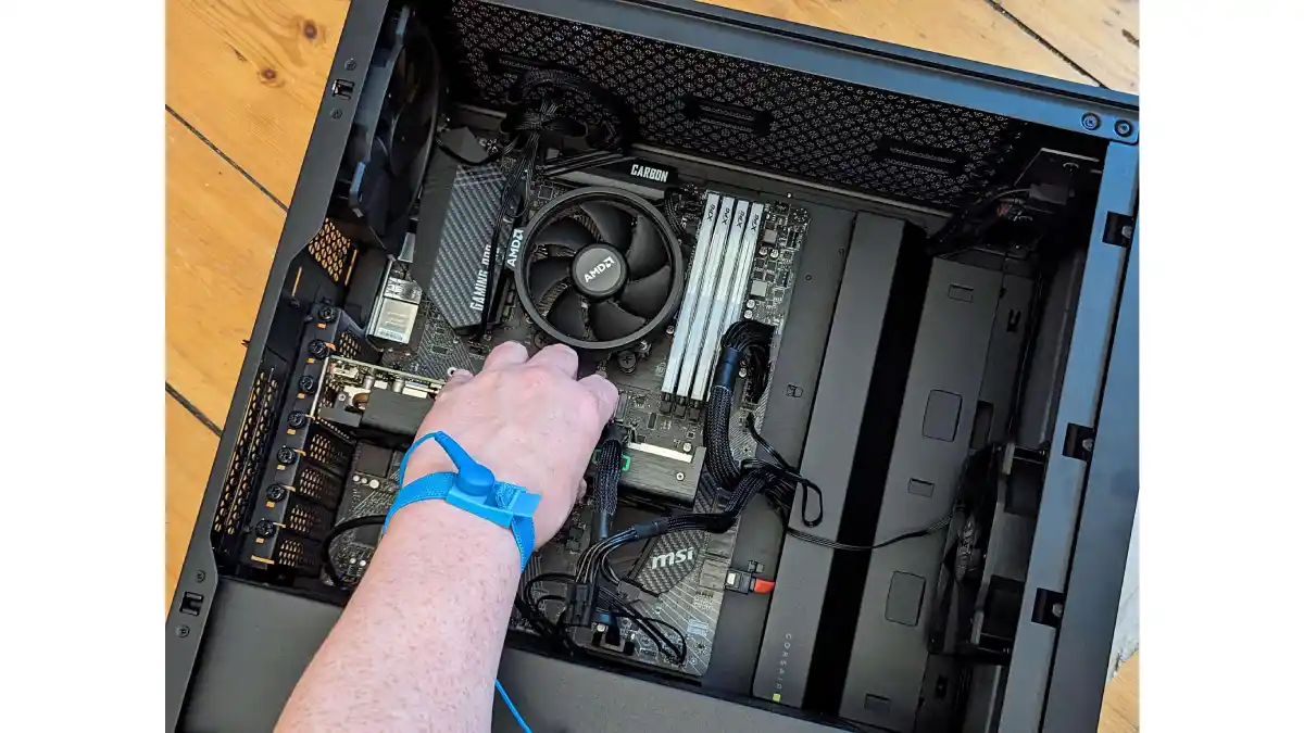 Начните с демонтажа боковых панелей. Мода на закалённое стекло увеличила вес корпуса, поэтому при снятии аккуратно удерживайте нижнюю часть стенки. Если «короб для компьютера» оснащён пылевыми сетками, сначала их промойте под теплой водой и высушите естественным путем. Внутреннюю часть продувайте короткими импульсами воздуха; постоянная струя может разогнать пыль по всей комнате. Поверхности вентиляторов очищайте кистью, избегая сильного нажима, чтобы не повредить лопасти.