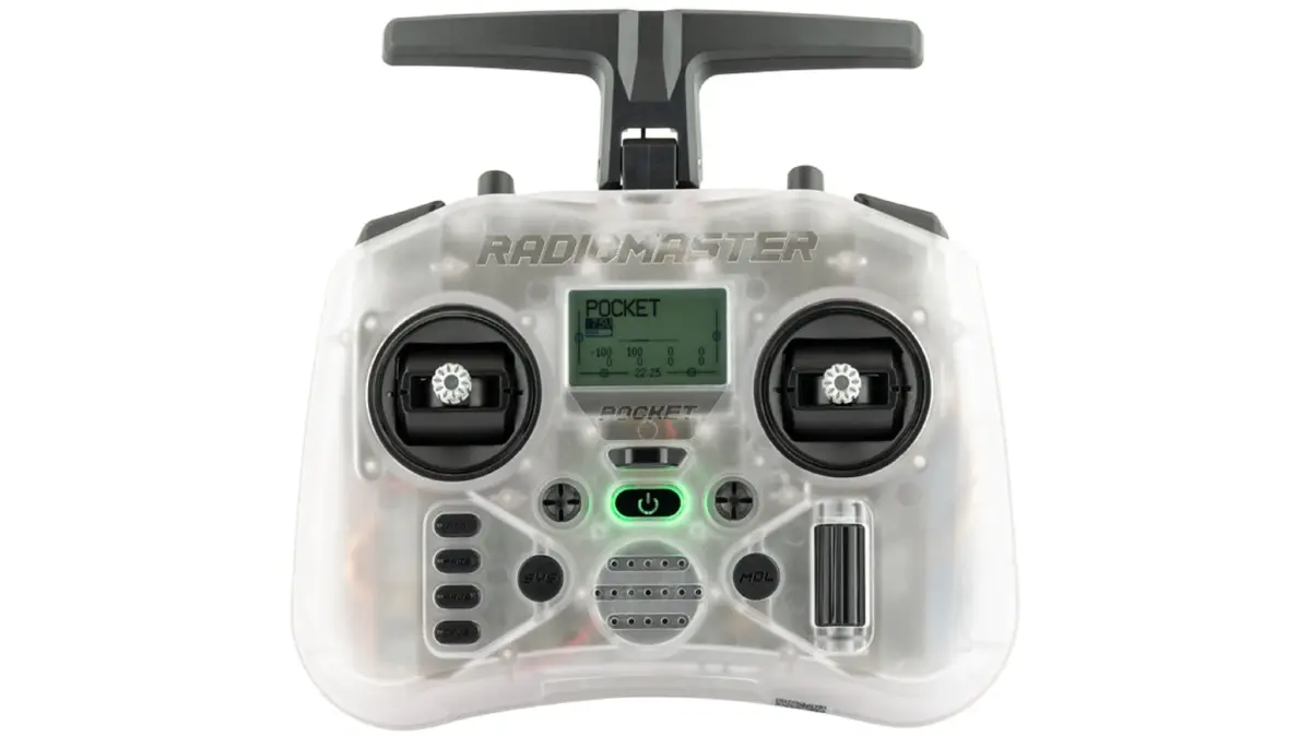 RadioMaster Pocket ExpressLRS Edge TX M2 миниатюрный пульт с прозрачным корпусом. Его удобно брать с собой на полёты, а за счёт стиков Hall и поддержки Nano-модулей он остаётся функциональным даже в компактном формате.