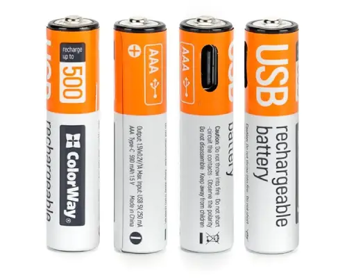 Аккумуляторная батарея ColorWay AAА USB-С 590 mAh 1.5V Li-Pol 2 шт. (CW-UBAAA-09)