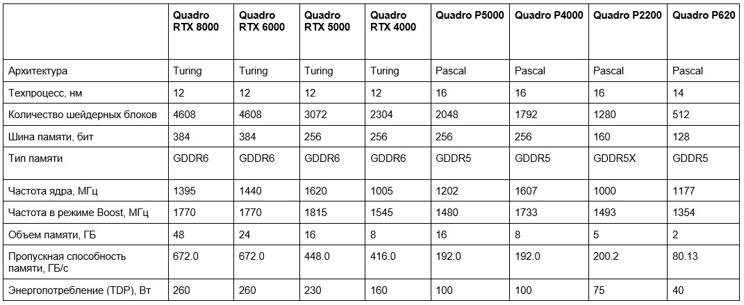 Особенности и преимущества компьютера с видеокартой Quadro P620, P2200 и Quadro RTX 4000, RTX 5000, RTX 6000
