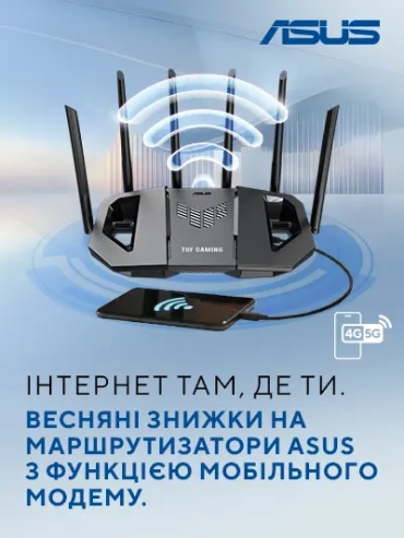 Маршрутизатор ASUS TUF-BE3600 приємно вразив з перших днів користування. Це ігровий роутер з підтримкою Wi-Fi 7, і він дійсно витримує великі навантаження. Усі пристрої вдома смартфони, ноутбуки, телевізори, консолі працюють одночасно без збоїв, лагів і розривів. Швидкість дуже висока, особливо при підключенні нових пристроїв, що підтримують Wi-Fi 6 або 7. Ігри на ПК та PlayStation працюють без затримок, стрімінг 4K йде плавно, відеоконференції стабільно навіть під час фонових завантажень.