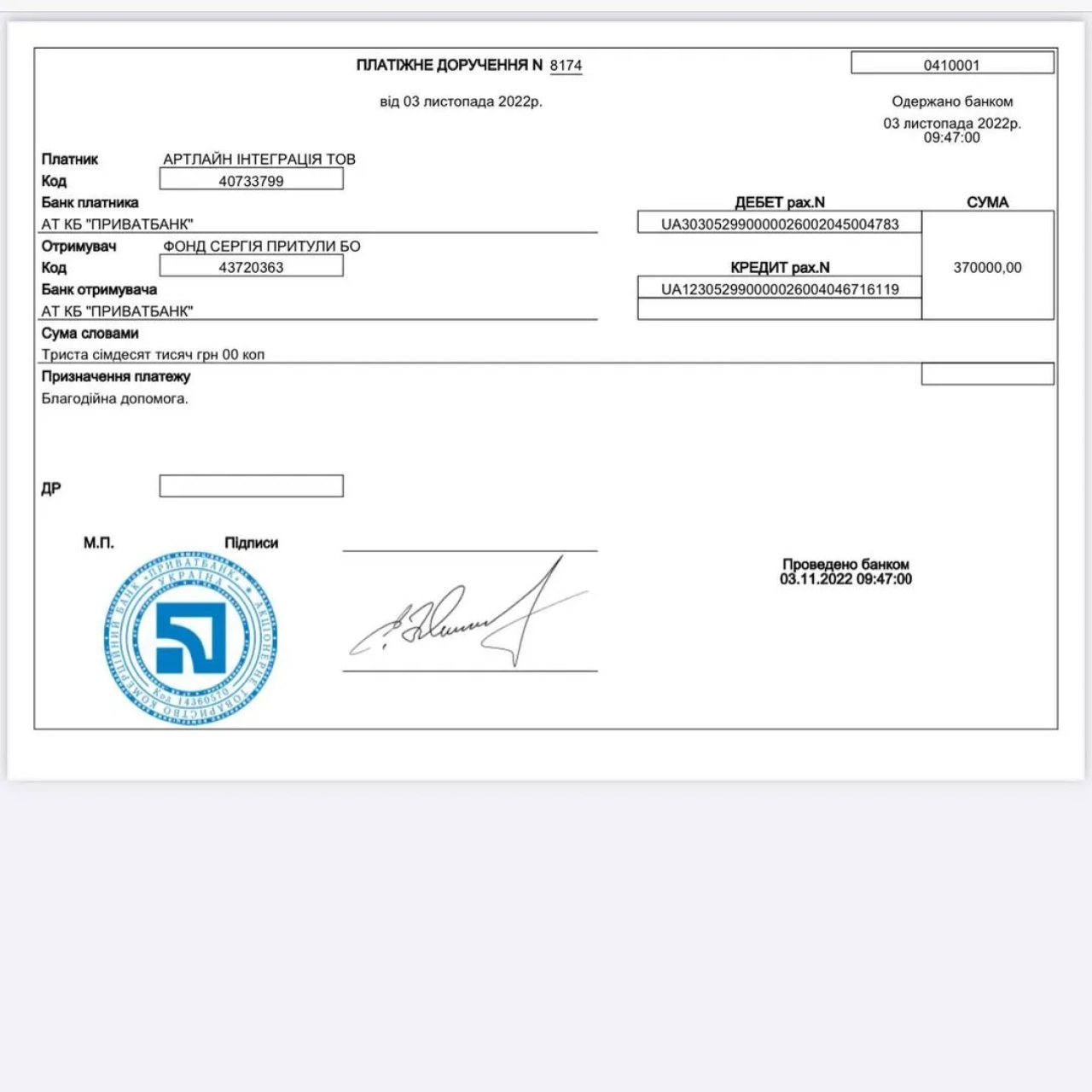 ? Нещодавно Фонд Притули @siriy_ua оголосили збір коштів на 50 бойових броньованих машин! Artline та наші партнери @asus.ukraine не змогли пройти повз, і вже сьогодні перерахували до фонду 370 000 грн!