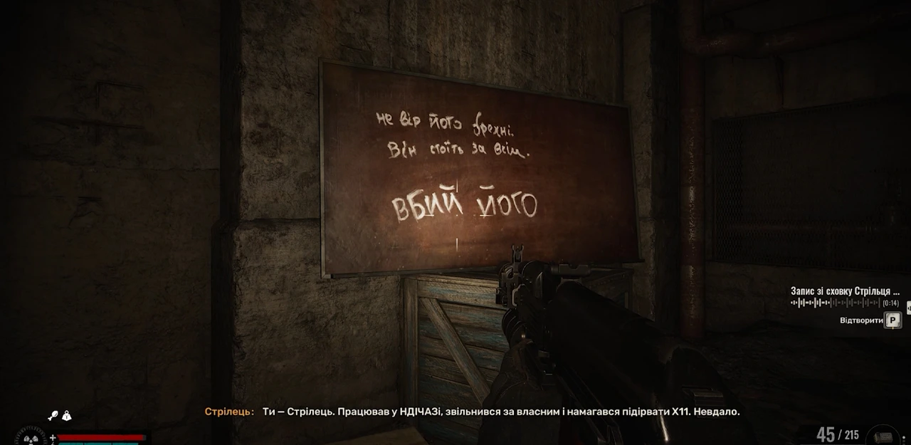 Исходя из сказанного, в определённый момент Стрелок понял, что университет ни в коем случае не собирается использовать тайны Зоны и технологии С-Сознания на благо человечества. Напротив — они собираются завершить проект «Х», чтобы взять всех под контроль и посеять иллюзию счастья для всех — «задаром, и пусть никто не уйдёт обиженным!» Впрочем, даже сам Стрелок не знает их имён, не знает, кто они, что говорит о действительно высоком уровне власти и секретности. Интересуют меня и слова «моя голова…». Вполне возможно, что в лаборатории Стрелок попал под пси-воздействие, из-за чего ему так и не удалось реализовать свои планы. Несмотря на это, он всё равно сохранил тайные контакты с Далиным. То есть направленное пси-воздействие было настолько мощным, что Стрелок начал опасаться повторной утраты личности. Он напоминает себе, кто он и что он, а также оставляет на доске послание на всякий случай: «Не верь его словам, он стоит за всем — убей его», которые относятся к Доктору. Ссылка на видео про большой план Кайманова будет в описании этого ролика, как и несколько других важных видосов по лору. Всё же мы не знаем наверняка, кто это писал и к кому это относится, но, распутывая клубок, всё сводится именно к таким выводам.