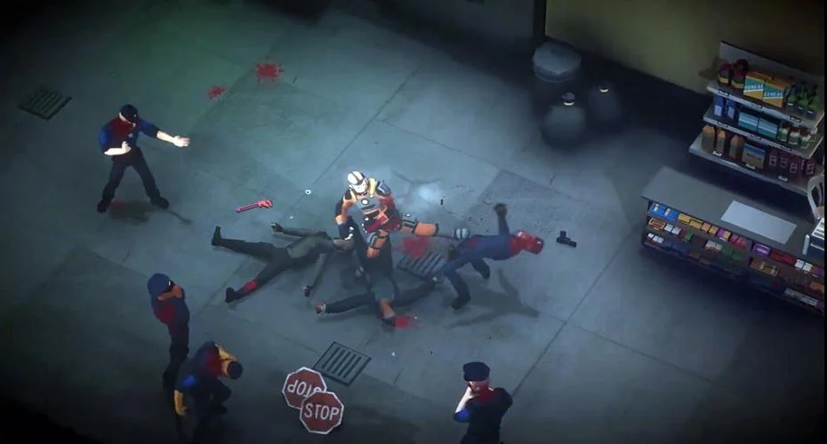 Сражения всегда подразумевают массовые драки один против всех. Нападать будут со всех сторон, поэтому стоит избегать ситуаций, в которых вас могут прижать к стенке. Почти всегда будем использовать разные подручные средства и оружие ближнего боя, которое подбираем с пола. Оружие имеет ресурс, для огнестрела пуль не найти, только подобрать новый ствол. Выносит огнестрел с одной пули, но и вас могут убить с 2-3-х. Иногда это привносит небольшой имбаланс, со временем чуваков со стволами становится больше. Проект понравится не только любителям жанра. Он стильный, динамичный, весёлый и впечатляющий, к тому же с музыкой, чей ритм не позволит вам оторваться от дисплея ни на миг.