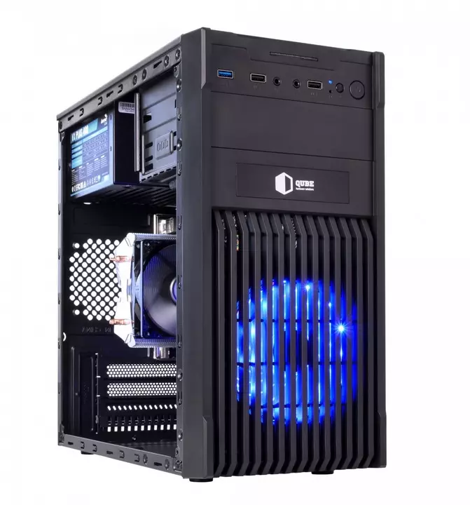 Это более продвинутая версия рассмотренного выше системного блока. В Home H55v17 более емкий накопитель и мощный графический процессор. Это отличный вариант для начинающих пользователей, которые хотят запускать игры с низкими настройками графики. Еще можно отметить красивый внешний вид корпуса QUBE BOREY.