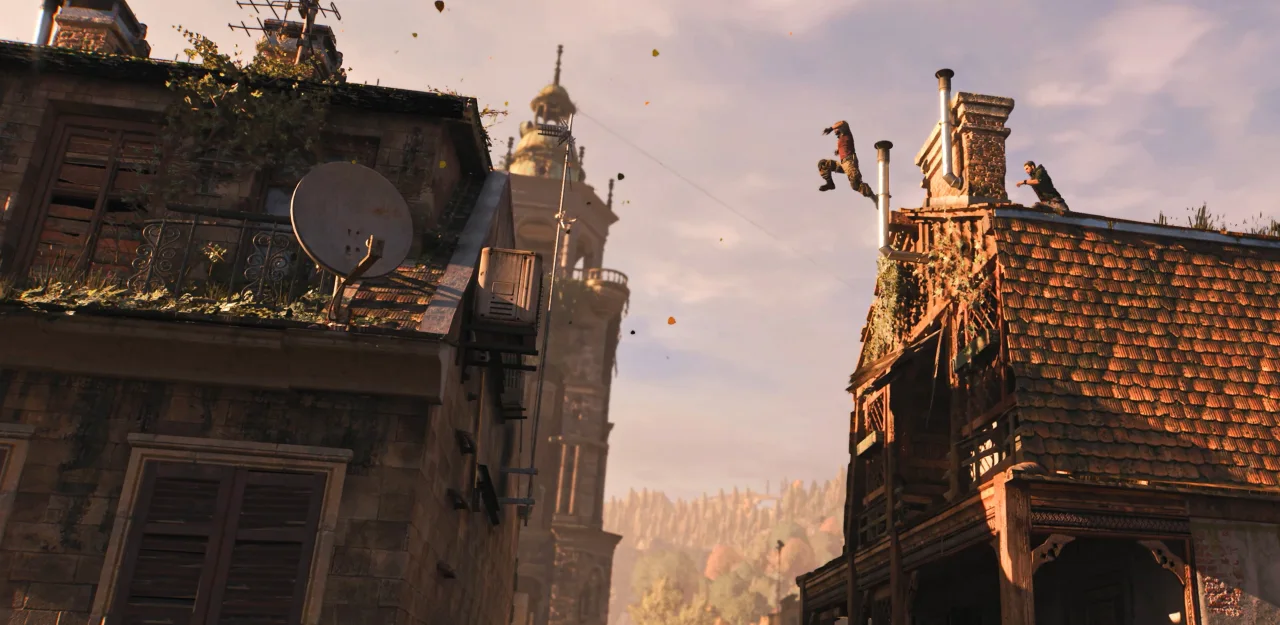 Вообще, если в предыдущей части всех зомби можно было классифицировать, здесь накидали рандом. Если в Dying Light 2 ты знал, что с каждого солдата падают пули, то в этой игре ничего подобного нет. Конкретных типов зомби тут вообще немного, а днём за вами разве что бегуны и ведьмы побегают — опасности как таковой нет. Нет тут и данжей в несколько этажей, как было в Dying Light 2, где главной наградой была инъекция для скилл-поинтов. Это просто вырезали и ничего не добавили взамен. Вырезали вообще много хорошего — особенно не хватает планера. Вместо него дали машину 4х4, которая нормально так экономит время. Конечно, физика вождения тут сильно отстаёт, но свою функцию машины выполняют. Есть ещё кошка-крюк, который здесь не слишком уместен, но в отличие от предыдущей части им не машут каждые 5 минут, поэтому можно немного поиграть в Питера Паркера — главное, самому не поймать паркинг.