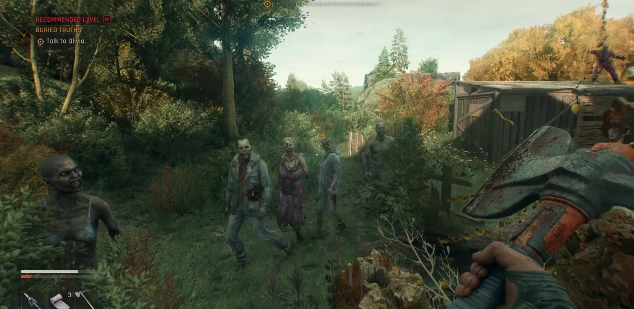 Что касается поведения мутантов — здесь всё как всегда. Искусственный интеллект пытается тебя сожрать даже тогда, когда ты уже отрубил мертвецу ноги. Система расчленения — просто кайф, все эти светлые стороны игра сохранила за собой. А вот с охотниками, а.к.а. кровососами, ребята перегнули палку. Если в предыдущей игре ты мог спокойно бегать ночами, и за тобой гнались максимум два охотника, то теперь за пару секунд на улице ночью ты ловишь сразу пятерых таких выродков, и каждый из них быстрее тебя. Скорость этих типов равна скорости Крейна в спринте, поэтому убежать от них на карте, где нет высоток и которая в основном состоит из равнин и полей, очень непросто. Более того, если в Dying Light 2 ты мог убивать охотников уже на середине игры, то здесь это сделать не выйдет. Это машины смерти, даже если вы в бист-режиме — и это слишком. Таким образом, прогуливаться ночью почти нереально даже под конец сюжетки с хорошей прокачкой и бист-режимом, который активируется за минимальное заполнение шкалы. Поведенческие паттерны и анимации атак охотников часто переносят на боссов и хай-левел зомби, что тоже входит в категорию самоповторов.