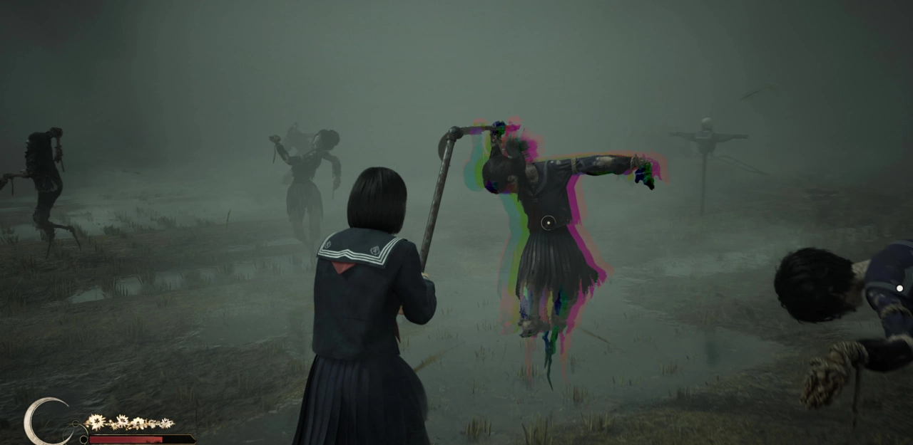 Если в том же Silent Hill 2 встреча с врагом выглядела как «Блин, опять они», то в Silent Hill f это выглядит как «Ану сюда!». Вокруг та же крутая атмосфера с туманом и прекрасной картинкой на Unreal Engine 5, однако даже они не смогли найти место тому первобытному страху, который мгновенно зарождается в твоей голове перед встречей с монстрами. Игра местами пытается пугать методом неожиданности, но на деле она вообще не способна пугать, ведь это вовсе не хоррор. Перед нами психологический триллер, смешанный с местной мифологией и социальной проблематикой тех времён. Пошёл ли на пользу игре отход от жанра ужасов? Да конечно же нет, ведь Silent Hill — это именно про то, чтобы наложить в штаны, а под конец впасть в шок от ребуса всей фабулы. А здесь я ходил больше как Блэйд, который металлической трубой разносит ожившие мамины бархатцы.
