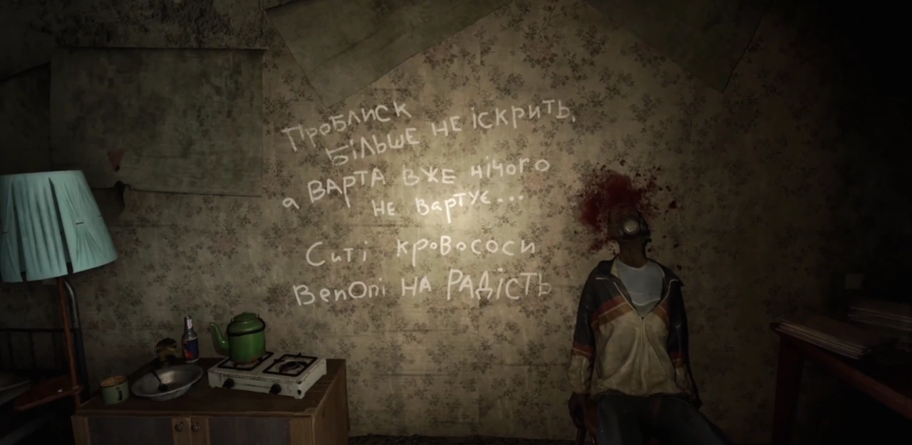 В последнем схроне мы находим мёртвое тело с дыркой во лбу, с пистолетом ПМ на полу и надписью на стене: «Проблеск больше не искрит, а Варта уже ничего не стоит. Сытые кровососы ВенОни на радость». ВенОн — это никнейм Журналиста, почему кровососы сыты и ему в радость — пока остаётся загадкой, тогда как с Искрой и Вартой и так всё понятно. Но у меня возникают вопросы: почему мёртвое тело одето в простой спортивный костюм да ещё и в Припяти, где ты никого не увидишь в подобных шмотках? Почему Журналист лазил в спортивке, когда в каждом схроне — если не элитная броня, то элитная пушка? И кто вообще стреляет себе в лоб? Это больше напоминает казнь, а не самоубийство, поэтому вполне возможно, что жмура кто-то убил, а не он сам наложил на себя руки. Почерк, конечно, сравнить не выйдет, ведь СМСки прилетали на КПК, но стоит вспомнить, что Веня уже инсценировал собственную смерть в бункере под Яновом — почему он не мог сделать это снова? Журналист прекрасно понимал, что ему не дадут выйти из Зоны, а обманывал и пользовался другими именами он часто — об этом он говорил сам. Так что же такого нашёл наш Журналист?