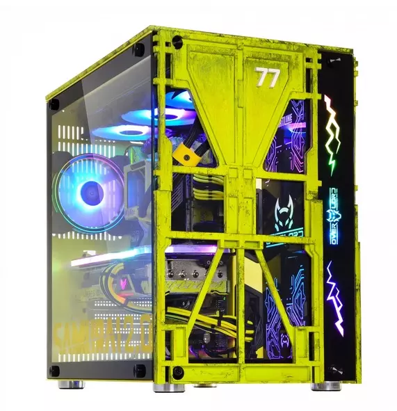 Изначально в компьютере используется 2 накопителя: NVMe SSD 1 Тб и M.2 NVMe 1 Тб. На системной плате находится 4 интерфейса М.2, поэтому пользователь может увеличить объем памяти по своему желанию. Здесь применяется система охлаждения WaterCooler 360mm и блок питания 850W 80+ Bronze. Этот ПК с интересным дизайном корпуса подойдет для пользователей, которые хотят выделяться и получить высокую мощность в играх.