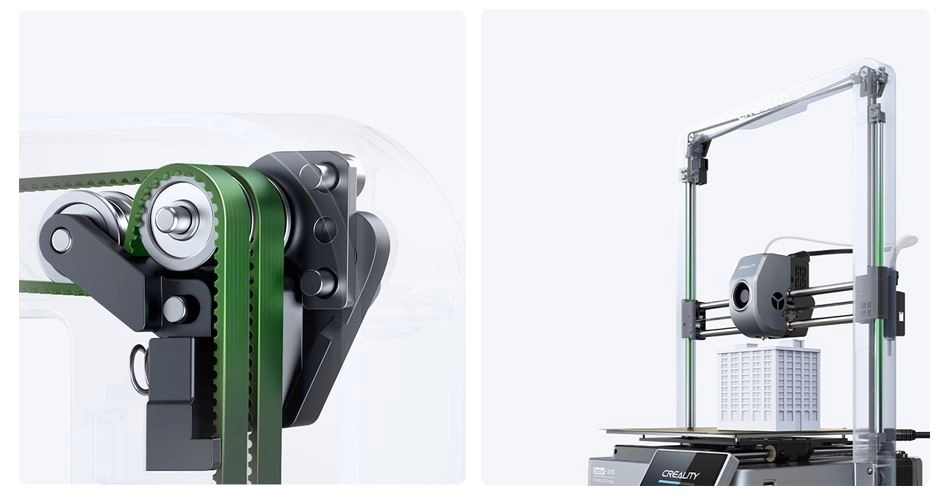 Зубчатые ремни XZ в Ender-3 V3 натягиваются автоматически. Ускользание или заклинивание ремней осталось в прошлом.