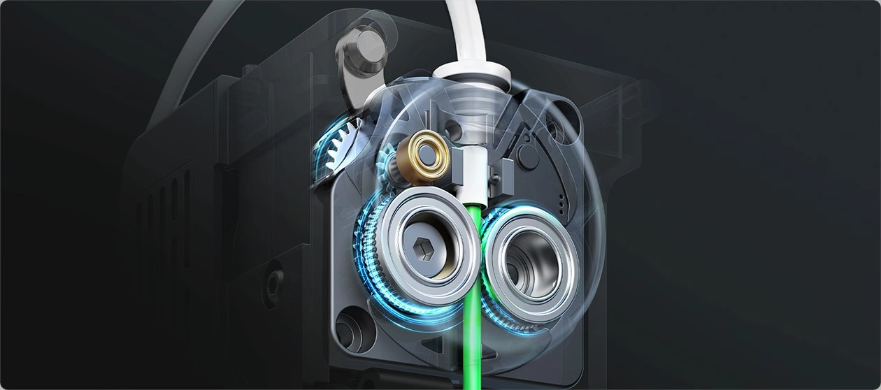 Экструдер с прямой подачей в Ender-3 V3 оснащен усилительной пружиной и шариковым плунжером. Он плотно прижимает нить, не допуская ее ослабления.