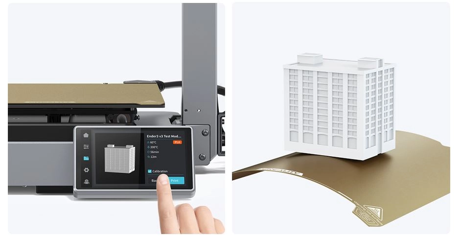 - Быстрая сборка: Ender-3 V3 поставляется в виде предварительно собранных модулей. Даже пользователь, впервые работающий с 3D-принтером, сможет собрать его через 10 минут.