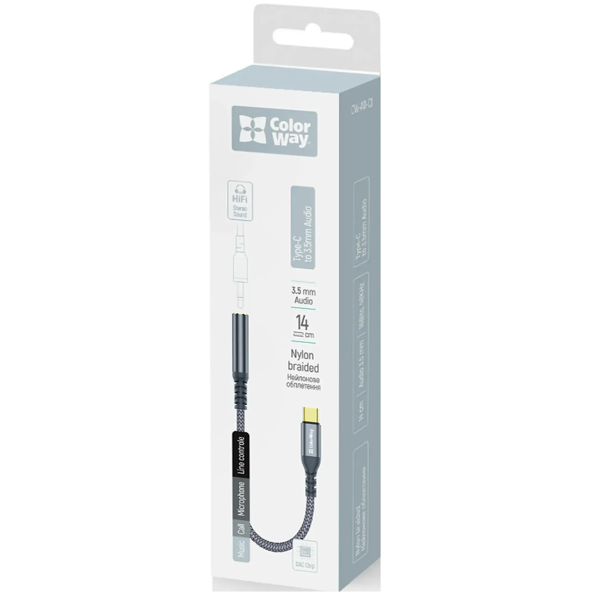 Адаптер ColorWay USB-C to 3.5 мм Female Audio 14 см Grey (CW-AD-CJ)