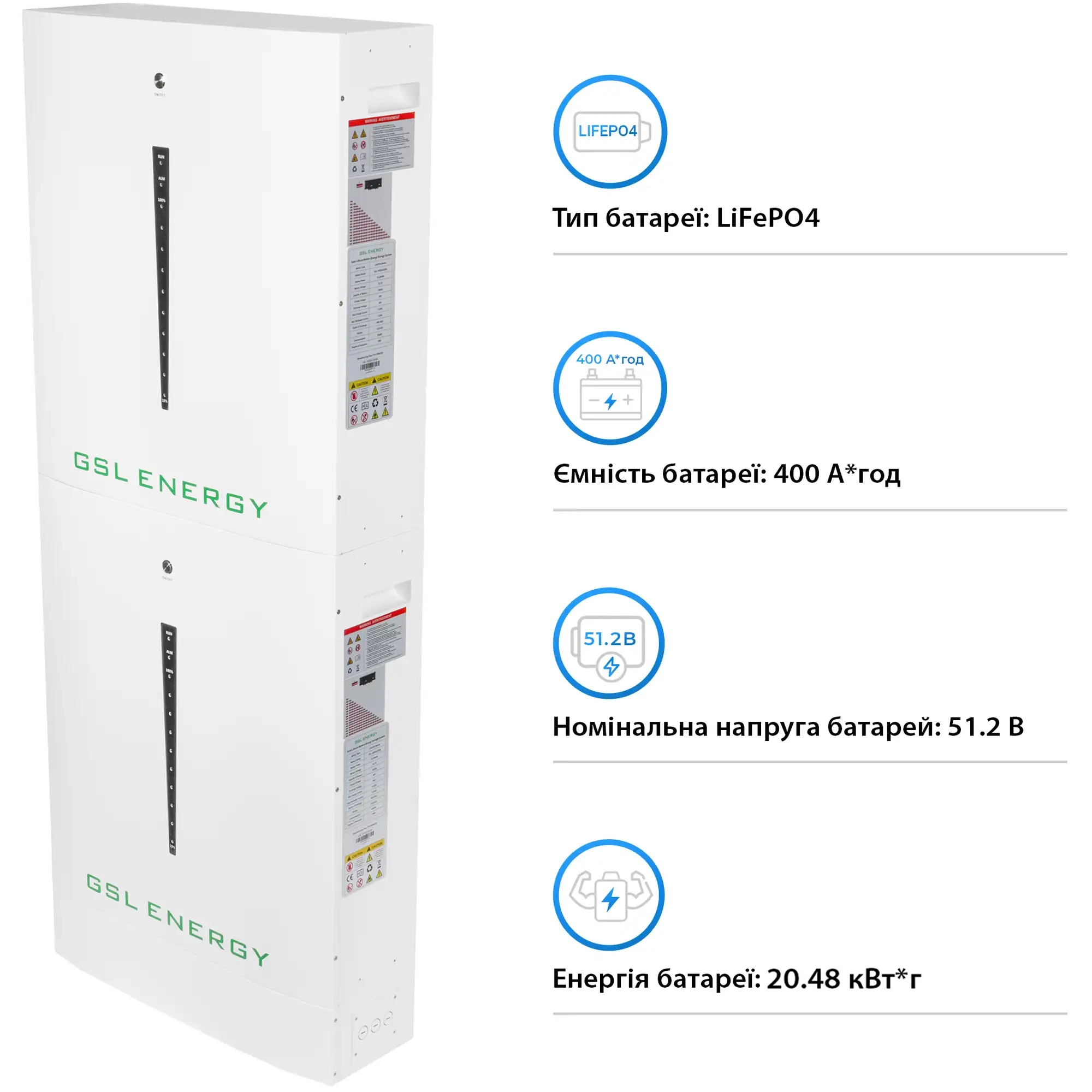 Аккумуляторная батарея GSL 51.2V 400Ah 20.48kWh LiFePO4 (2xHESS51200A)