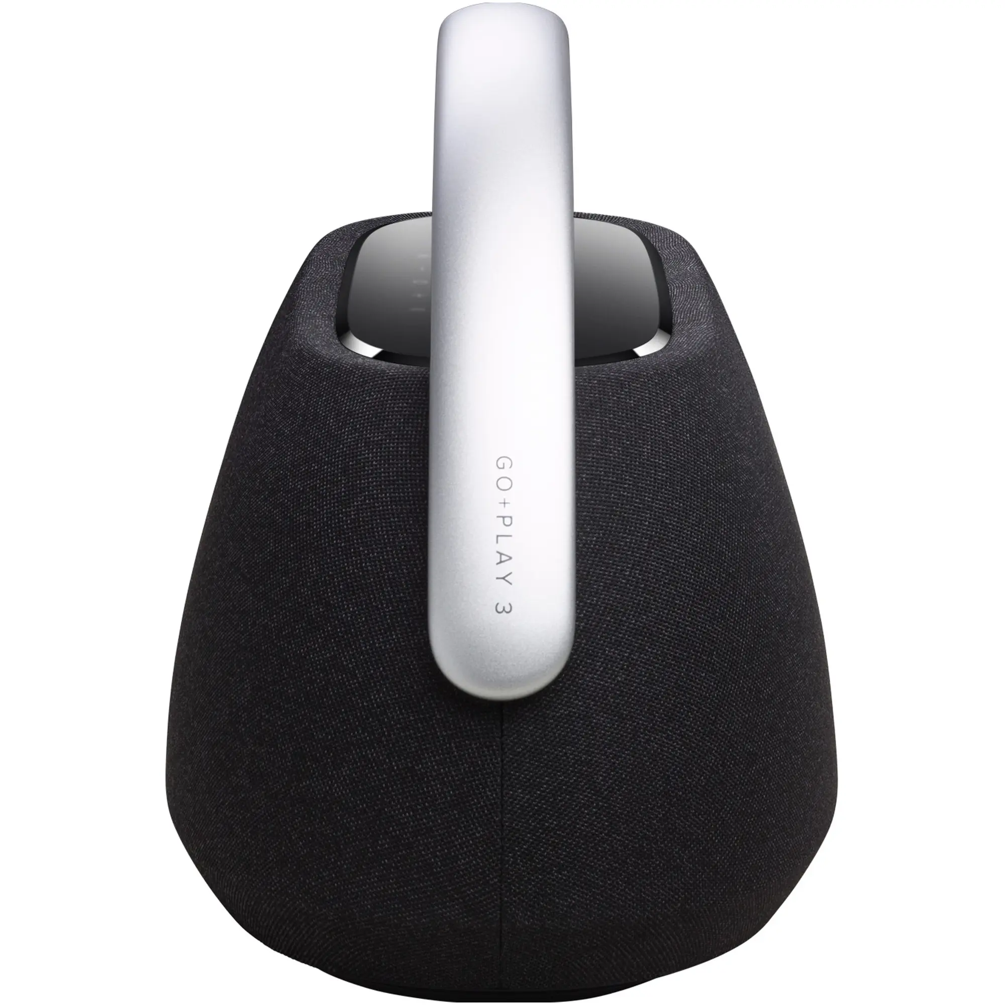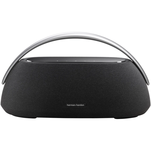Дизайн Harman Kardon Go + Play 3 Black сочетает современные материалы и фирменный стиль бренда. Корпус покрыт плотной премиальной тканью, а изящная ручка из анодированного алюминия обеспечивает удобство транспортировки. Сенсорная панель управления выполнена из закалённого стекла, что придаёт устройству ещё больше элегантности и подчёркивает его современный характер.