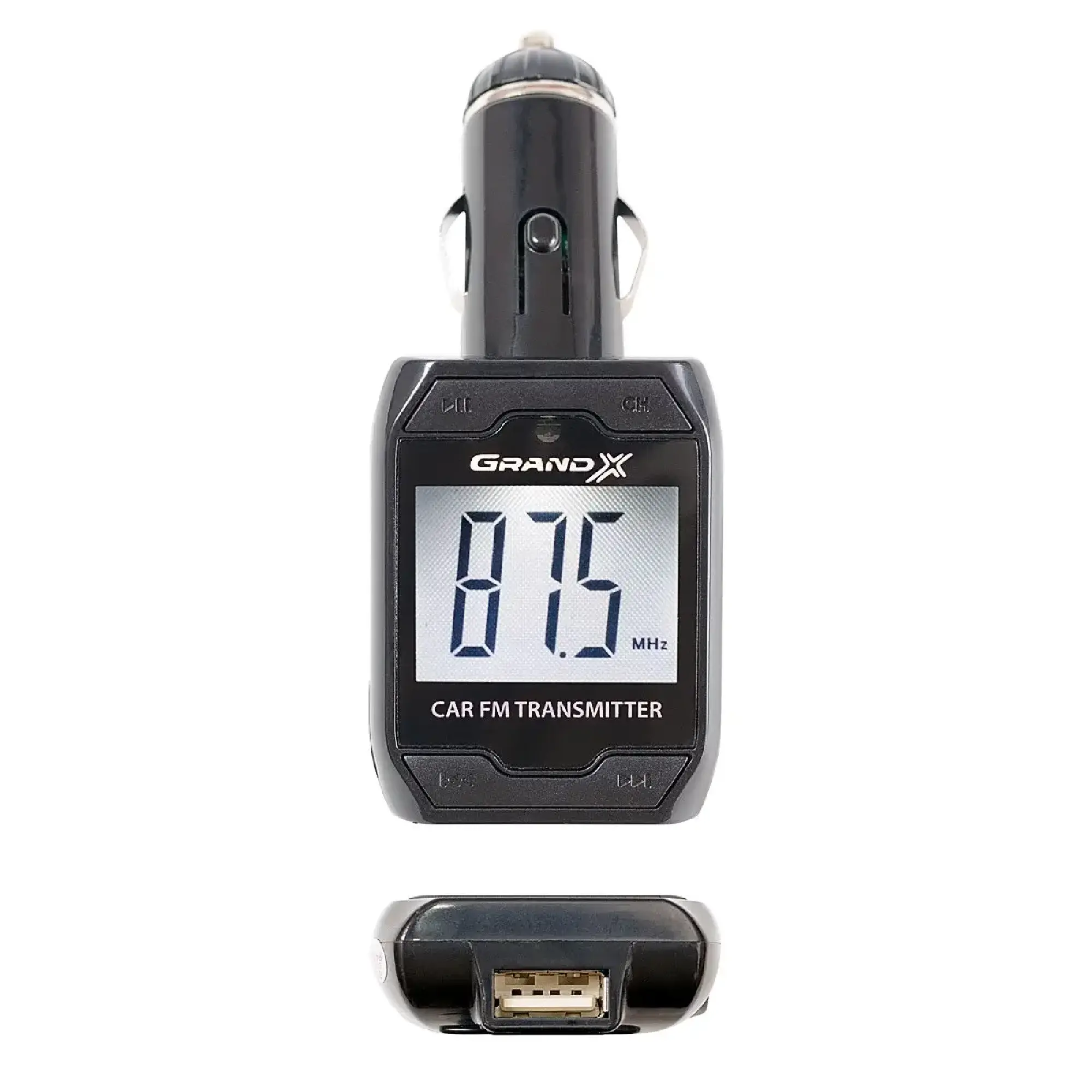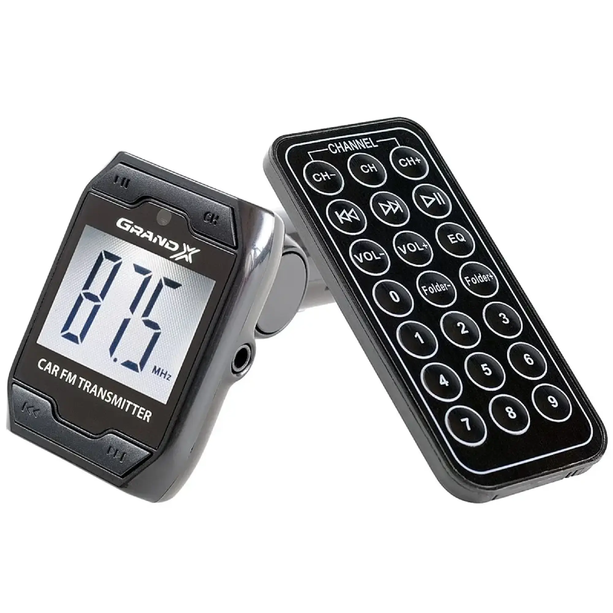 FM-трансмиттер Grand-X CUFM71GRX оснащен ЖК дисплеем с подсветкой, на котором отображается частота FM-волны. Он также имеет удобные кнопки переключения треков и смены волны. Кроме того, управление можно осуществлять с помощью пульта ДУ.