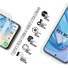 Материал гидрогелевой плёнки устойчив к пожелтению и износу, обладает эффектом самовосстановления: мелкие царапины со временем исчезают, возвращая поверхности первоначальную гладкость. Поверхность устойчива к отпечаткам пальцев и легко очищается. Сенсорная чувствительность не снижается — касания и жесты распознаются мгновенно и точно.
