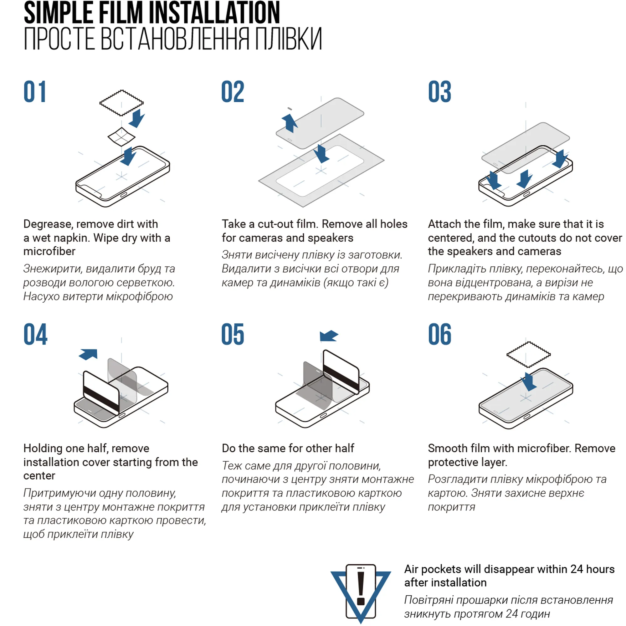 Установка пленки не требует специальных навыков или использования дополнительных жидкостей, что делает процесс простым и удобным. Благодаря антистатичному слою, пыль и грязь не прилипают к пленке во время установки, а остаточные воздушные пузырьки исчезают в течение 24 часов, обеспечивая идеально гладкую поверхность. Она не предназначена для повторного использования, поэтому важно соблюдать все инструкции для достижения наилучшего результата. ArmorStandart Matte — это выбор тех, кто стремится обеспечить своему устройству надежную защиту и современный внешний вид.