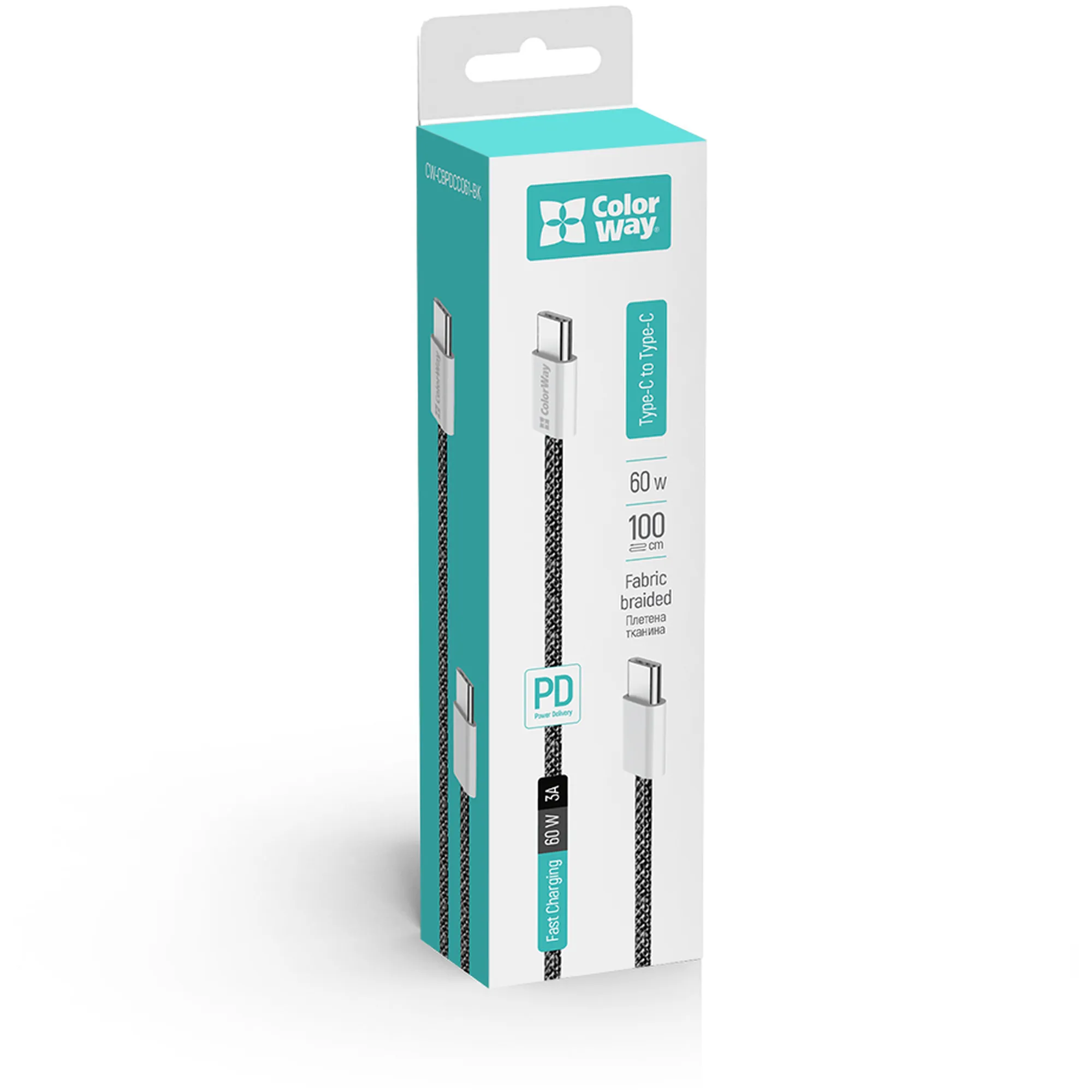 Кабель ColorWay USB-C 60W 3А 1m Black (CW-CBPDCC061-BK)