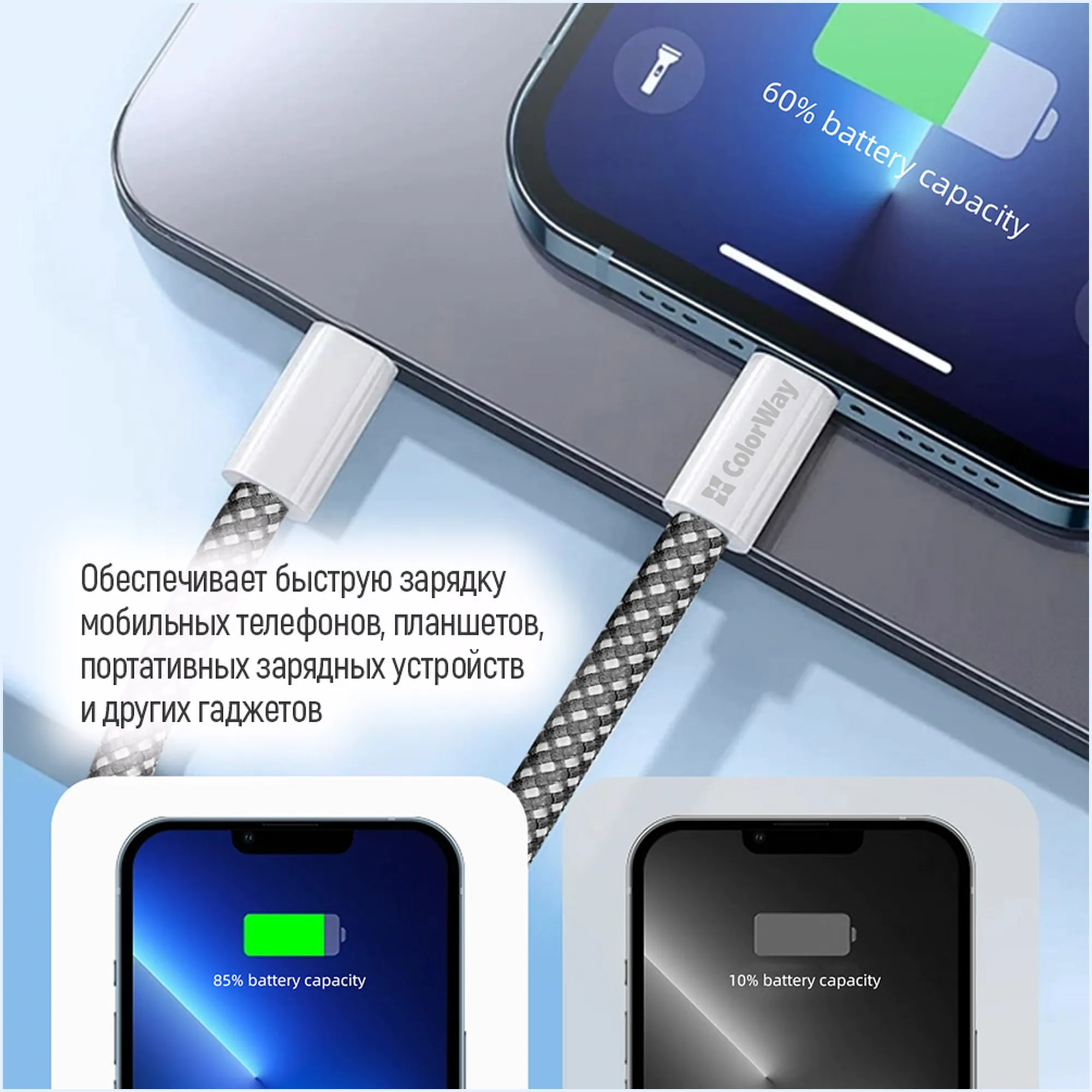 Кабель ColorWay USB-C 60W 3А длиной 1 метр — это не просто аксессуар, а надежный и продуманный помощник в повседневной цифровой жизни. Он создан для тех, кто ценит высокую скорость, универсальность и качество. С его помощью вы легко зарядите ноутбук, смартфон или планшет с разъемом USB-C, будь то MacBook с поддержкой Thunderbolt 3 или флагманский смартфон от Samsung или Xiaomi. Благодаря поддержке технологии Power Delivery мощностью до 60 Вт и току в 3 ампера, процесс зарядки становится быстрым, эффективным и абсолютно безопасным.