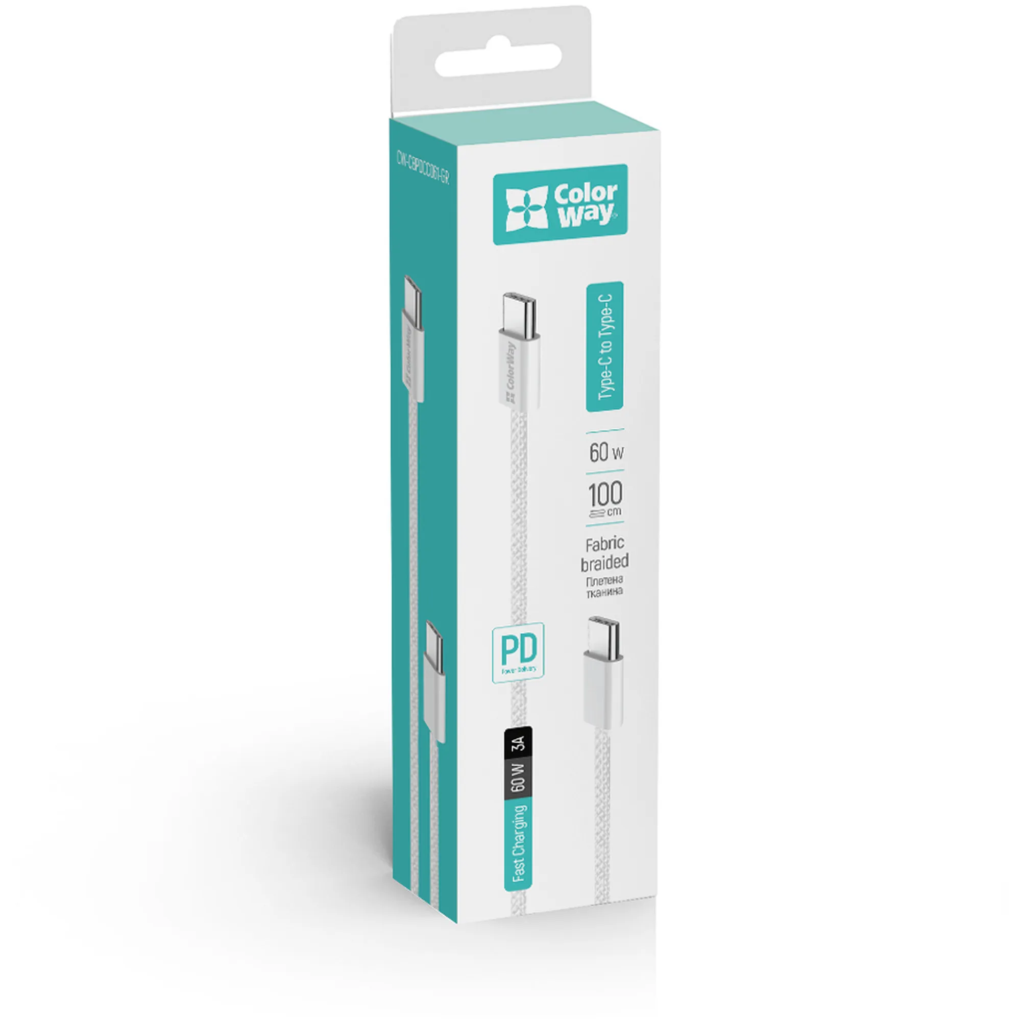 Кабель ColorWay USB-C 60W 3А 1m Grey (CW-CBPDCC061-GR)