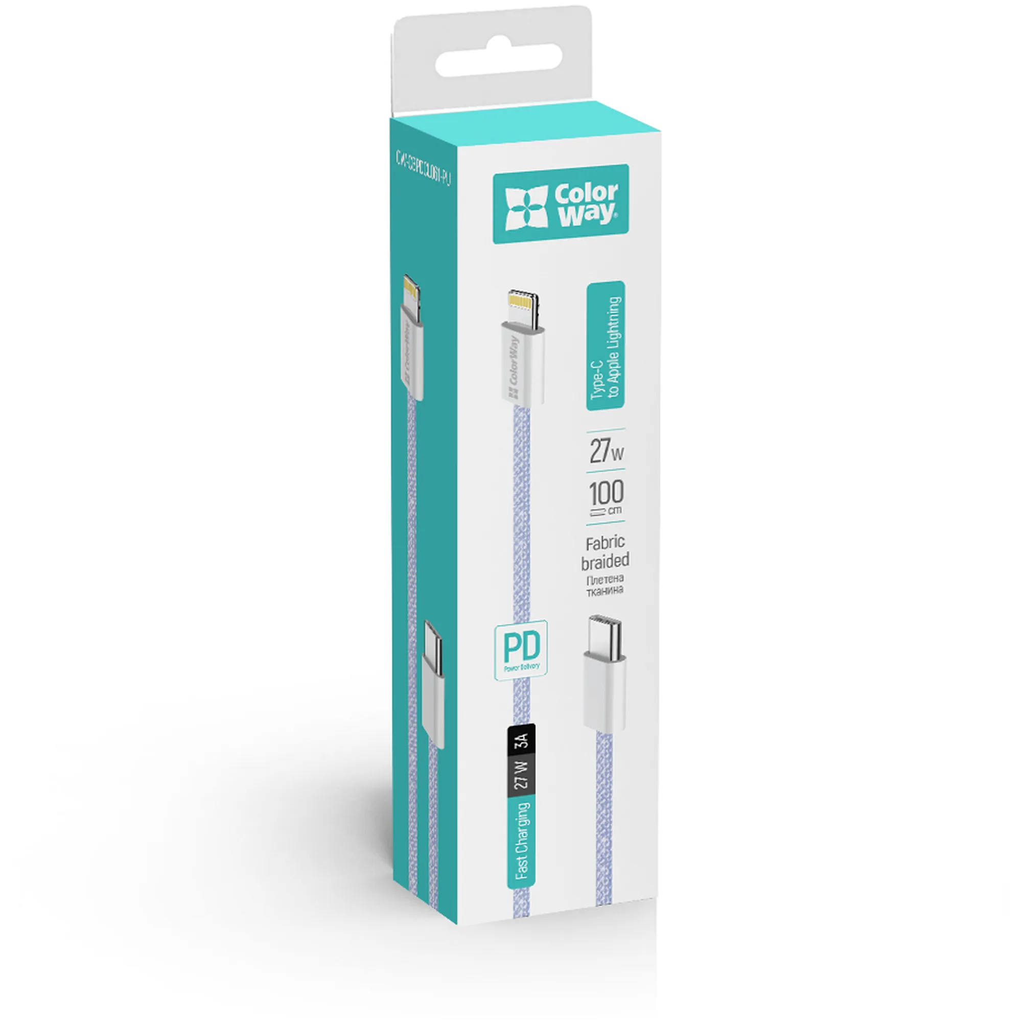 Кабель ColorWay USB-C - Lightning 27W 3A 1m Purple (CW-CBPDCL061-PU)