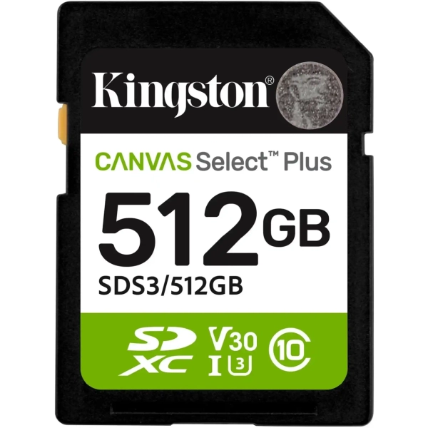 Карта памяти Kingston Canvas Select Plus Gen3 SDXC объемом 512 ГБ разработана для надежной работы с большими массивами цифровых данных. Она ориентирована на камеры и другую технику с SD-слотом, где требуется стабильное хранение и уверенная обработка фото- и видеоматериалов.
