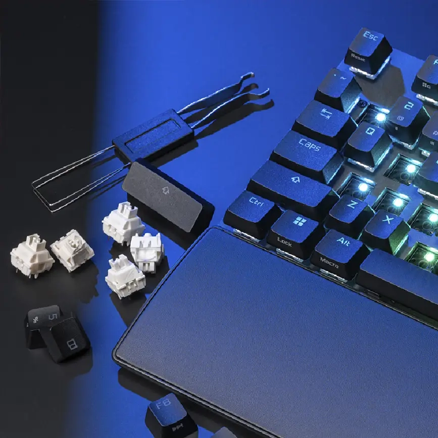 Клавиатура поддерживает установку переключателей различных типов, позволяя пользователям подобрать идеальные тактильные ощущения под свой стиль игры или работы