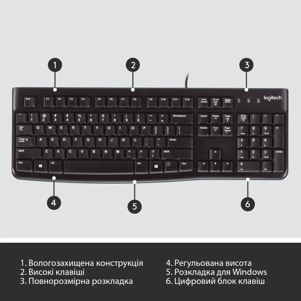 Клавиатура Logitech K120 USB OEM Ukr для домашнего или офисного пользования с проводным USB интерфейсом и демократичной ценой.