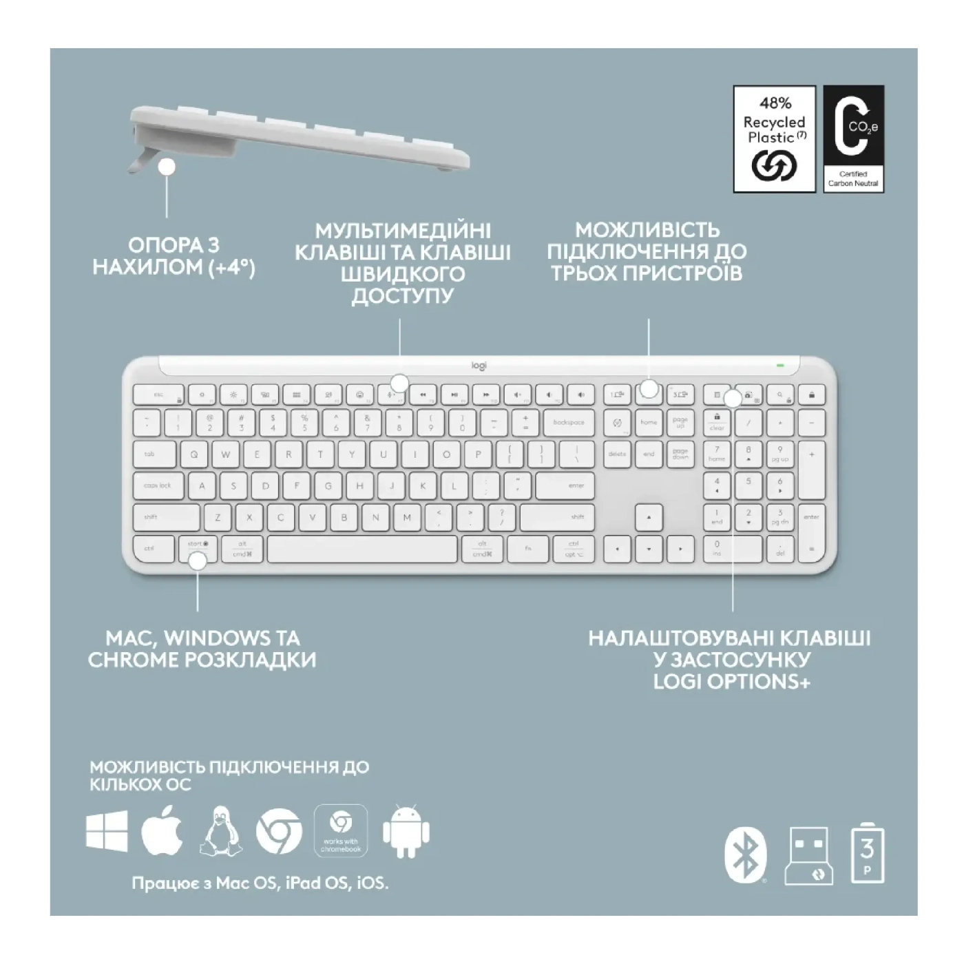 Купить клавиатуру Logitech Signature Slim Wireless Keyboard K950 Off White (920-012466): стиль и комфорт в каждом нажатии/h2>