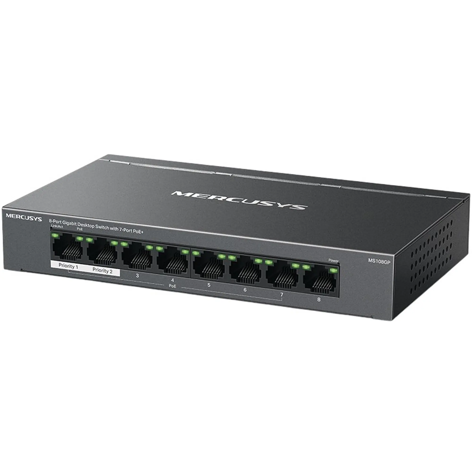 Коммутатор Mercusys MS108GP — это восьмипортовый гигабитный сетевой коммутатор с поддержкой технологии PoE+, который позволяет одновременно передавать данные и питание по одному Ethernet-кабелю. Из восьми портов устройства четыре поддерживают PoE+ с мощностью до 30 Вт на порт и общим бюджетом питания 64 Вт. Это делает MS108GP отличным решением для подключения IP-камер, точек доступа, VoIP-телефонов и других устройств, не требующих отдельного источника питания. Коммутатор автоматически определяет, какие устройства поддерживают PoE, и безопасно распределяет питание, предотвращая перегрузку сети.