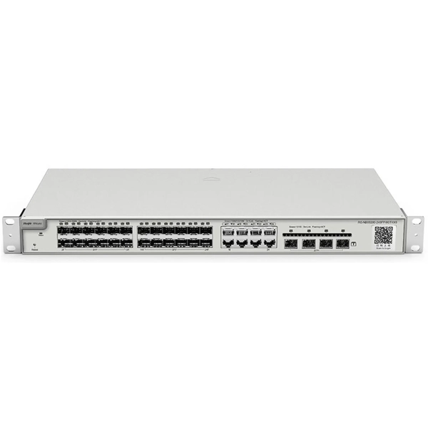 Ruijie Reyee RG-NBS5200-24SFP/8GT4XS — универсальный коммутатор для построения гибкой корпоративной сети с большим количеством подключений. Он рассчитан на инфраструктуру, где сеть — это не просто доступ в интернет, а основа рабочих процессов: обмен данными, доступ к сервисам, работа с файлами и непрерывная связь между подразделениями.