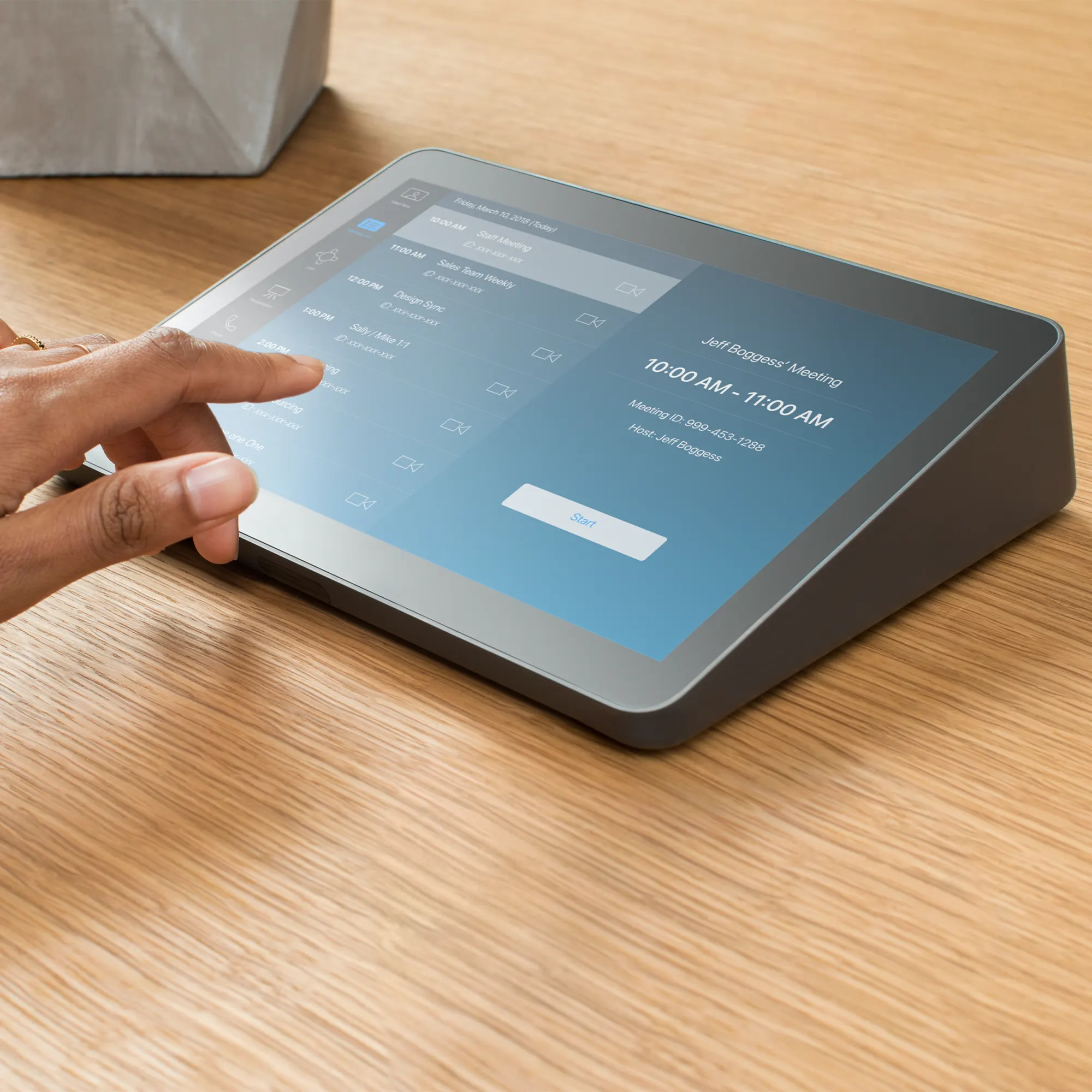 Сенсорный контроллер Logitech Tap: Этот интуитивный сенсорный экран позволяет управлять всеми аспектами видеоконференций. Вы можете легко включать и выключать звук, регулировать яркость и контраст изображения, а также управлять видеокамерой и микрофоном.