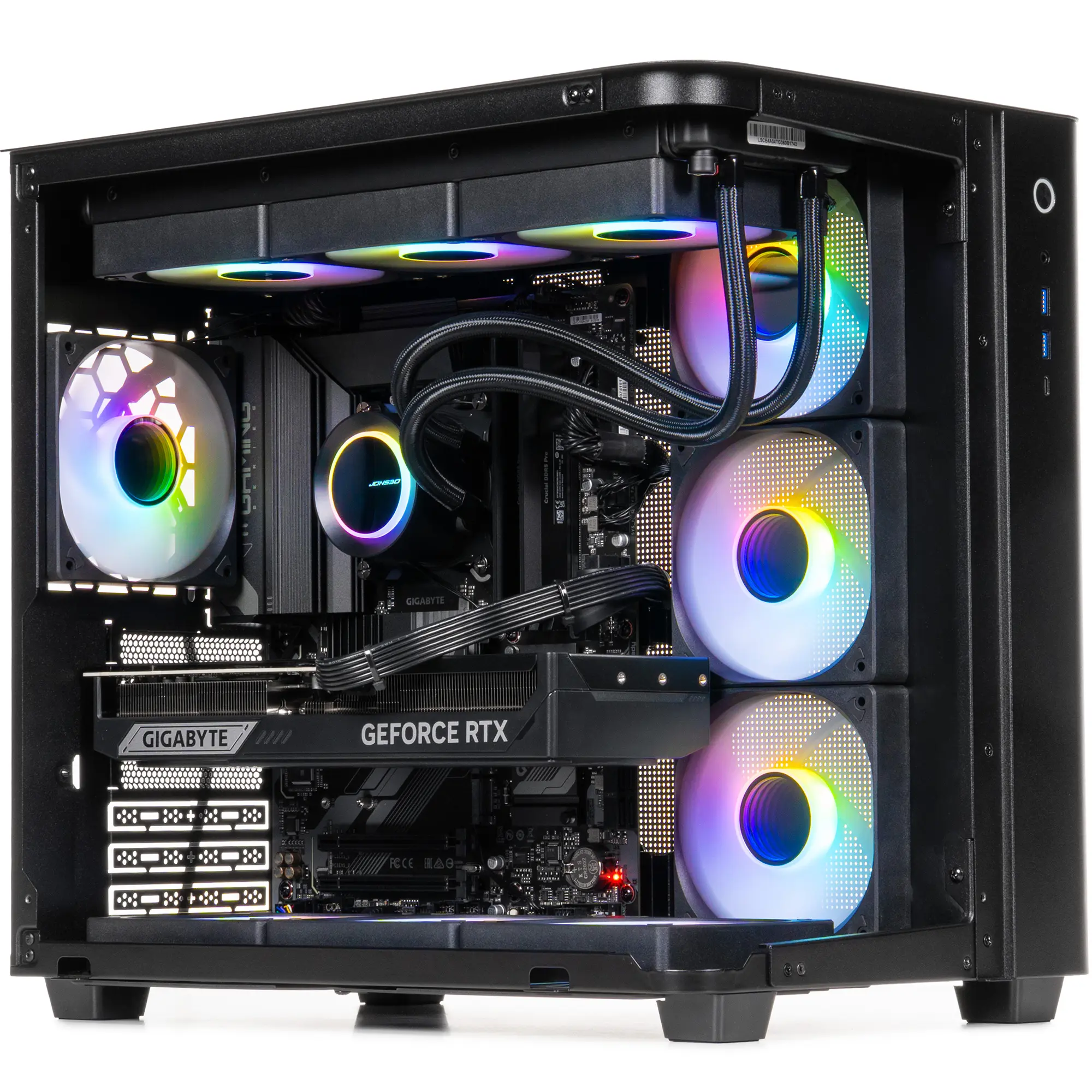 - 3x120mm RGB LED fans (Bottom) + 3x120mm RGB LED fans (Side) + 1x120mm RGB LED fan (Rear) + 3x120mm RGB LED fans (Top for cooling system)