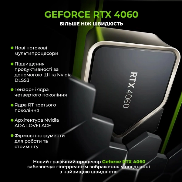 Этот игровой компьютер поставляется с предустановленной операционной системой Windows 11 Home, что обеспечивает готовность к использованию сразу после получения. Легко заказать и купить в Украине, мы гарантируем высокое качество товара и оперативную доставку по тарифам курьерской службы.