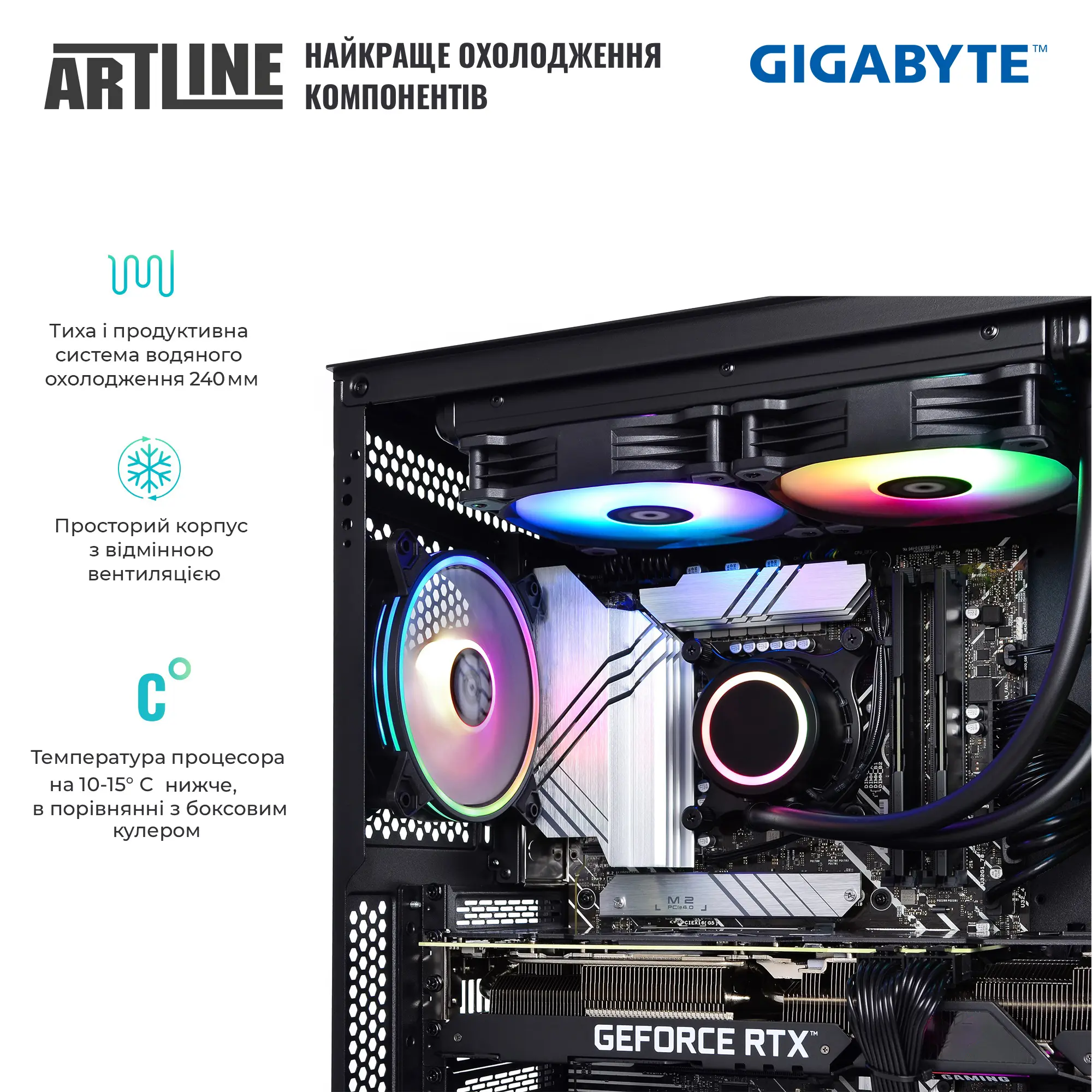 Для поддержания оптимальной температуры комплектуется системой водяного охлаждения и пятью вентиляторами: три 120-мм ARGB вентилятора спереди, один сзади и два сверху. Это гарантирует эффективное охлаждение даже при высоких нагрузках, а блок питания с сертификацией 80+ Bronze обеспечивает стабильное и надежное питание всех компонентов. Заказать компьютер ARTLINE Gaming X87 можно в интернет-магазине Artline, где вы всегда найдете выгодные цены и условия покупки.