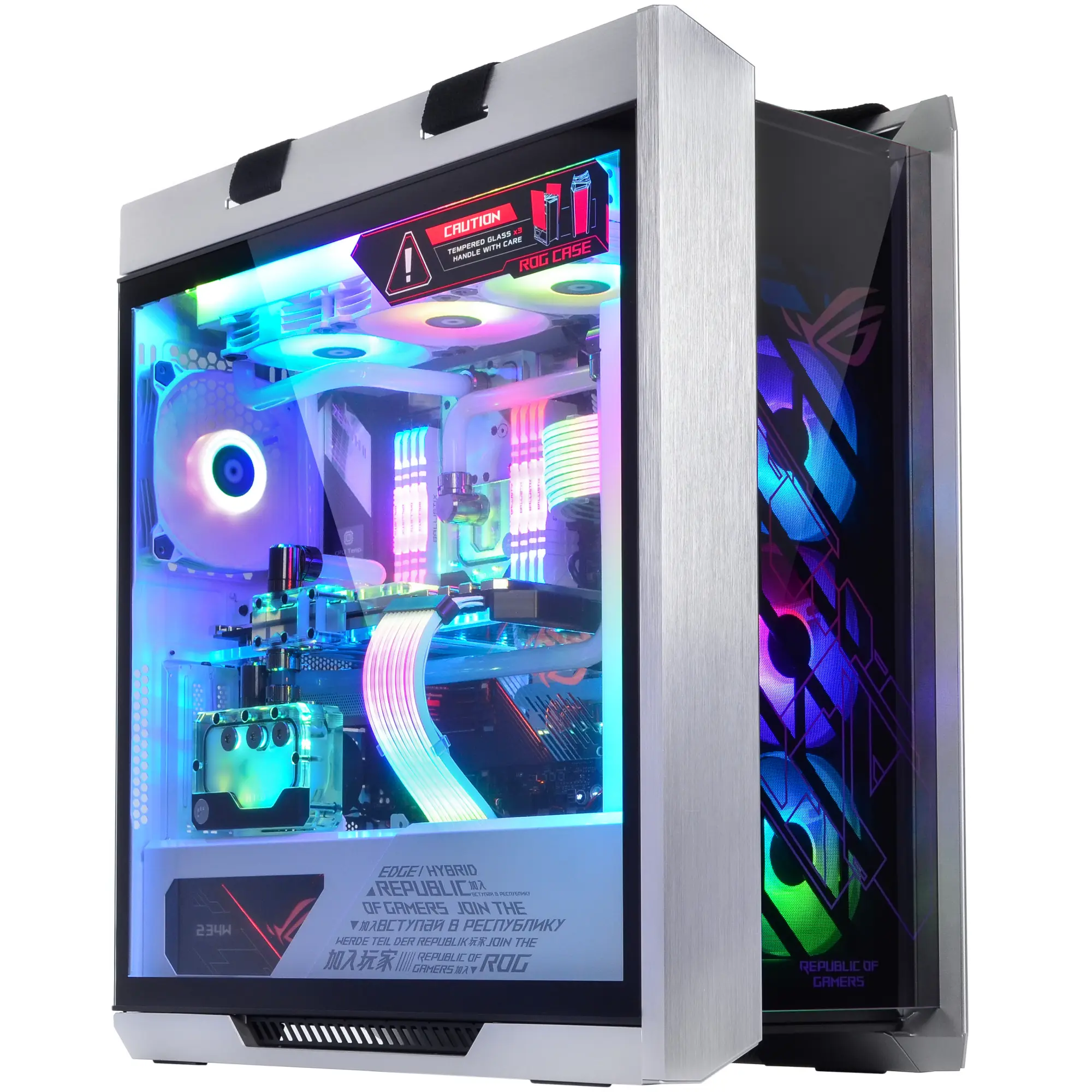 Системный блок собран в корпусе ASUS ROG Strix Helios WC White Edition с алюминиевой рамой, закаленным стеклом и RGB-подсветкой. Дополнительно установлены мощные вентиляторы и блок питания ROG Thor 1200W 80+ Platinum, обеспечивающий стабильность даже при максимальной нагрузке. Материнская плата ROG STRIX X870E-E GAMING WIFI оснащена широким набором интерфейсов, включая Wi-Fi 7, Bluetooth 5.4, USB4 и 5Gb Ethernet. Это гарантирует гибкость подключения и полную готовность к будущим технологиям.