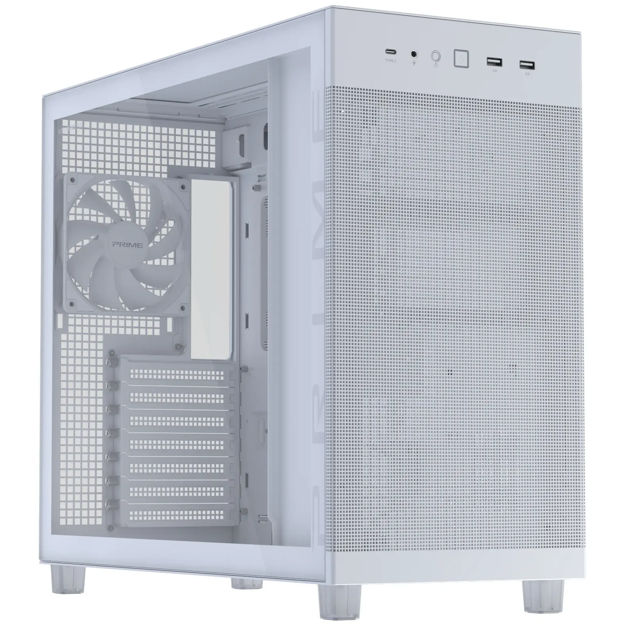 ASUS Prime AP303 — это корпус формата ATX, созданный для тех, кто стремится к максимальной производительности в компактном формате. Его объем в 44 литра позволяет разместить полноразмерные видеокарты длиной до 360 мм, водяные радиаторы 360 мм толщиной до 60 мм и стандартные ATX-блоки питания длиной до 180 мм. Такая вместимость делает модель универсальной основой для современных игровых или рабочих систем, при этом она сохраняет аккуратный и сдержанный внешний вид.