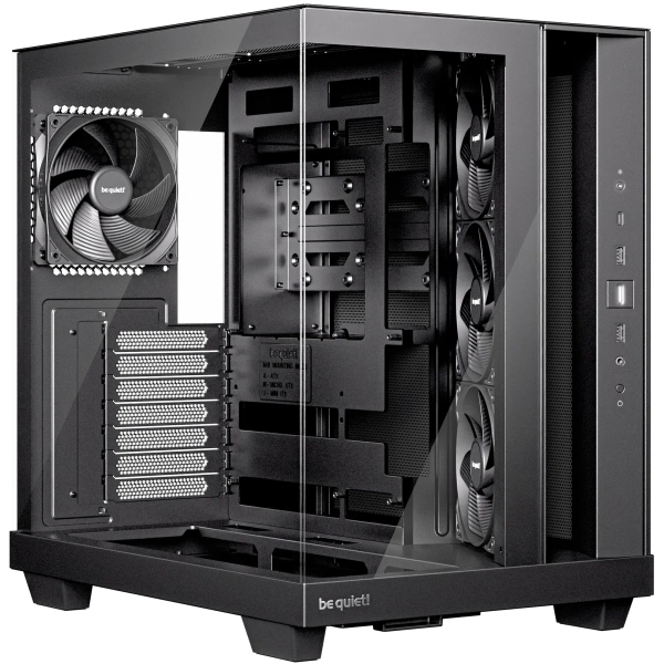 Одна из ключевых особенностей LIGHT BASE 500 Black — это его продуманная система охлаждения. В комплекте идёт четыре тихих вентилятора Pure Wings 3 120mm, обеспечивающих оптимальный воздушный поток и способствующих эффективному отведению тепла. Благодаря поддержке радиаторов до 360 мм, пользователи могут быть уверены в том, что их системы останутся прохладными даже во время самых интенсивных игровых сессий. Кроме того, корпус поддерживает установку длинных видеокарт, что позволяет собрать мощную игровую машину без компромиссов.