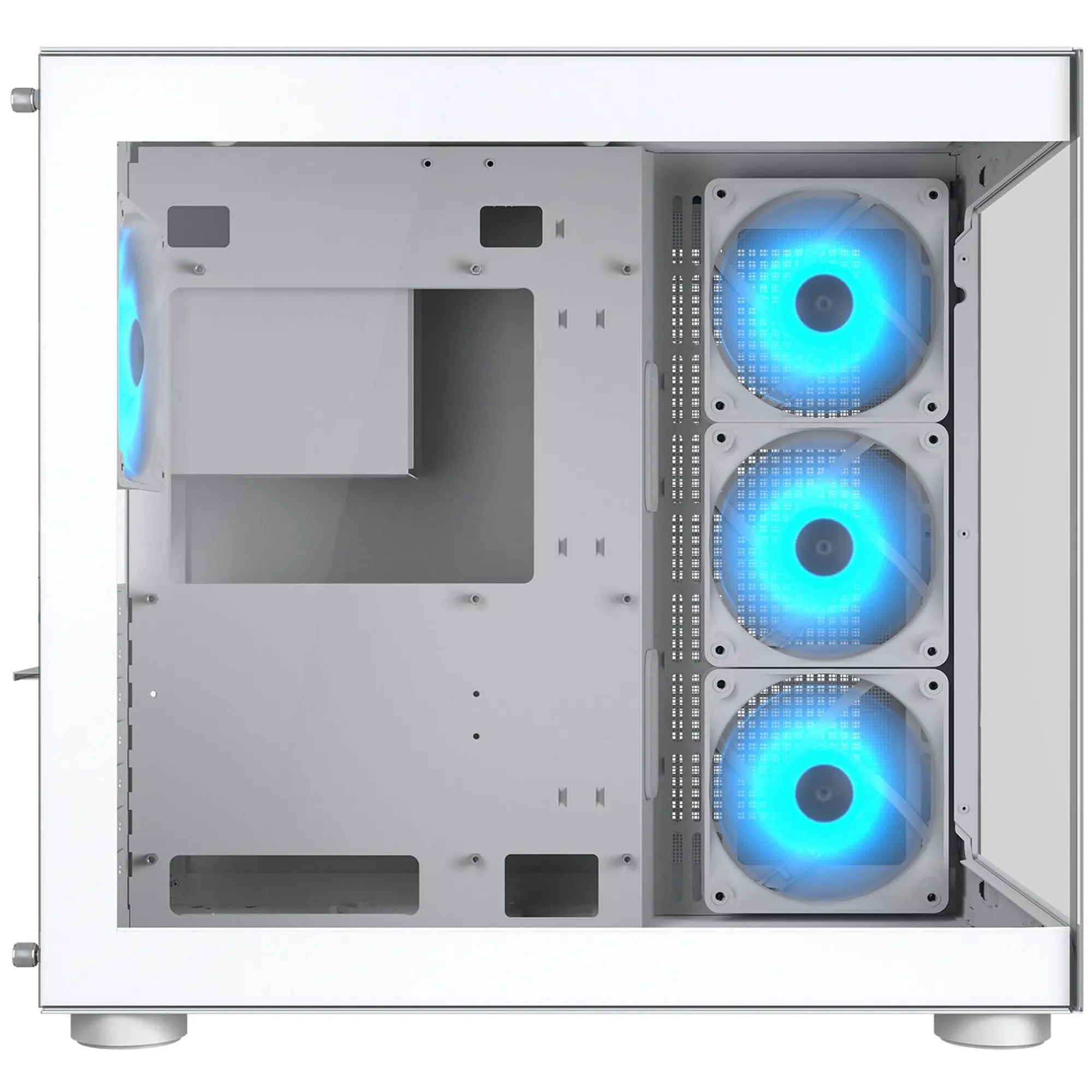 Корпус Cougar FV150 RGB White представляет собой элегантный Mid Tower, созданный для тех, кто ценит гармонию дизайна и функциональности. Его двухкамерная архитектура обеспечивает удобное разделение комплектующих: одна часть демонстрирует основные компоненты через стеклянные панели, а вторая скрывает кабели, блок питания и накопители. Такое решение не только подчёркивает эстетику сборки, но и обеспечивает аккуратный внутренний вид. Поддержка видеокарт длиной до 400 мм, включая возможность вертикальной установки, делает корпус готовым для самых современных игровых систем.