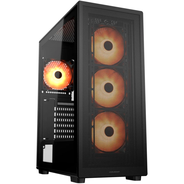 Корпус Cougar MX220 RGB Black — современное и функциональное решение для сборки игрового или универсального ПК, сочетающее стильный дизайн и продуманную конструкцию. Передняя панель выполнена в геометрическом стиле и оснащена RGB-подсветкой, которая придаёт системе выразительный внешний вид и позволяет настроить индивидуальный визуальный акцент. Черный корпус обладает строгой эстетикой, сохраняя при этом динамичный характер благодаря подчёркнутым линиям и эффекту подсветки.