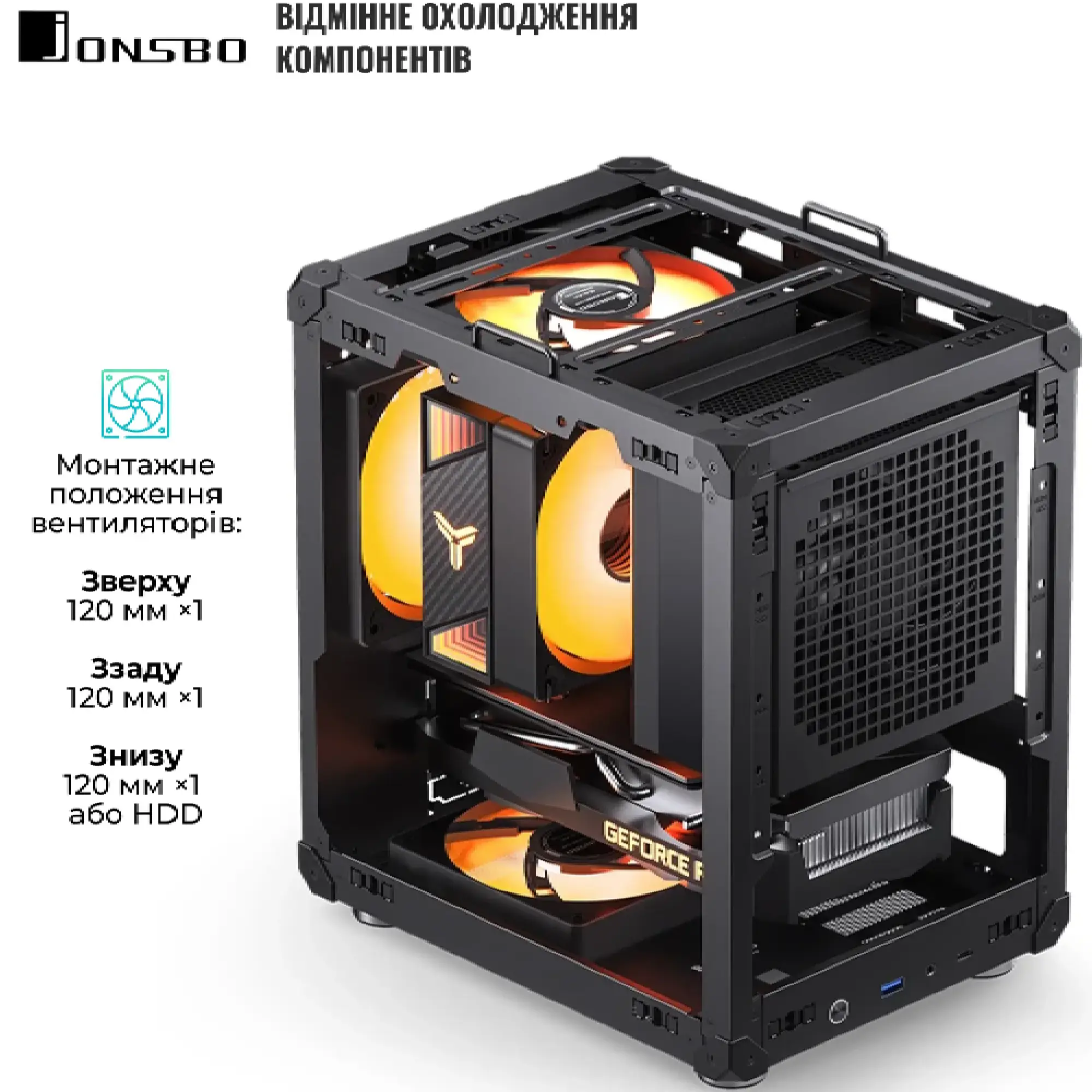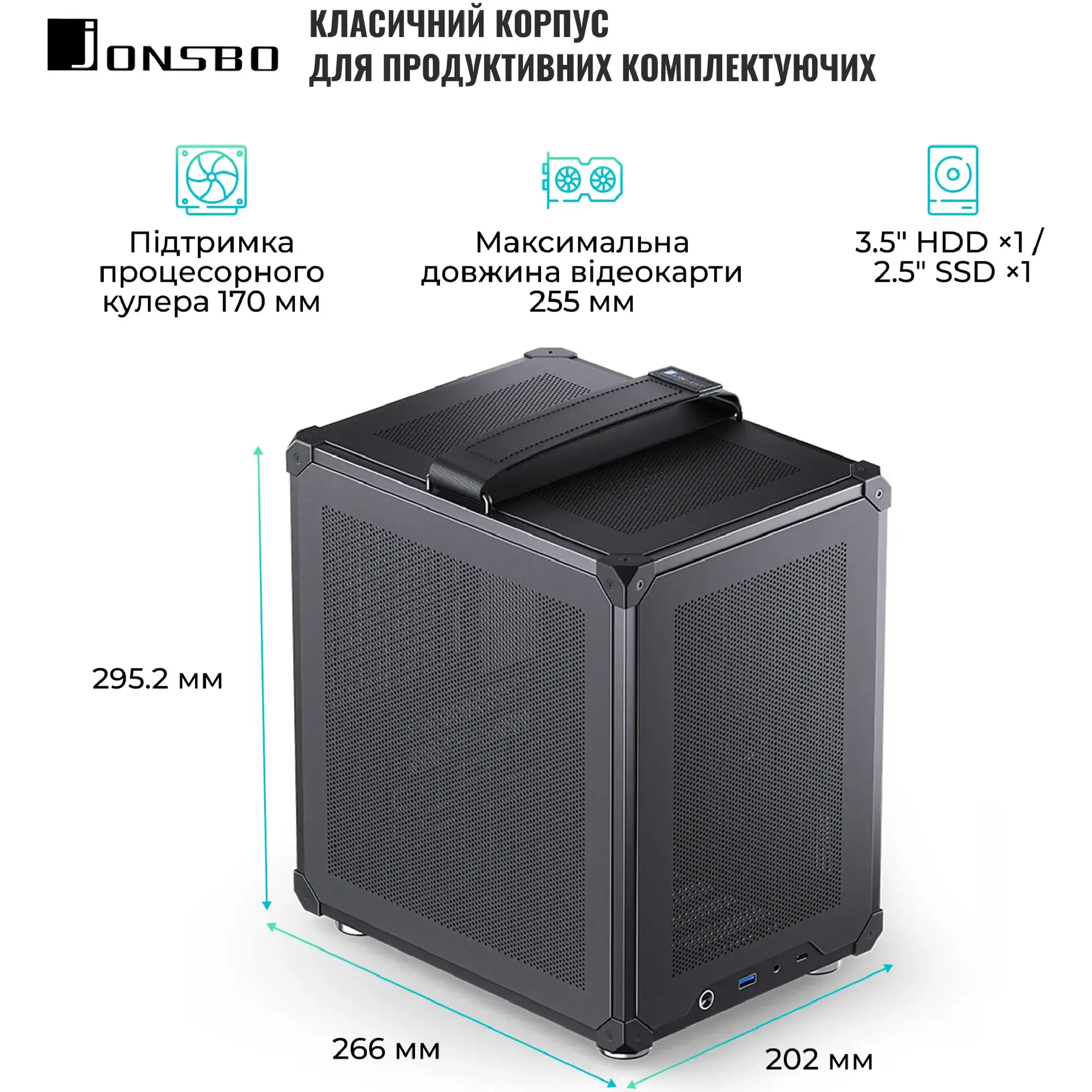 В Jonsbo C6-ITX Black можно разместить полноразмерные блоки питания ATX длиной до 140 мм, кулеры процессора высотой до 170 мм и современные видеокарты длиной до 255 мм. Такое сочетание делает корпус отличным выбором для сборки как универсальной рабочей станции, так и компактного игрового компьютера. Возможность установки SSD и HDD обеспечивает гибкость хранения данных: внутри предусмотрены крепления для одного 2.5" накопителя и одного 3.5".