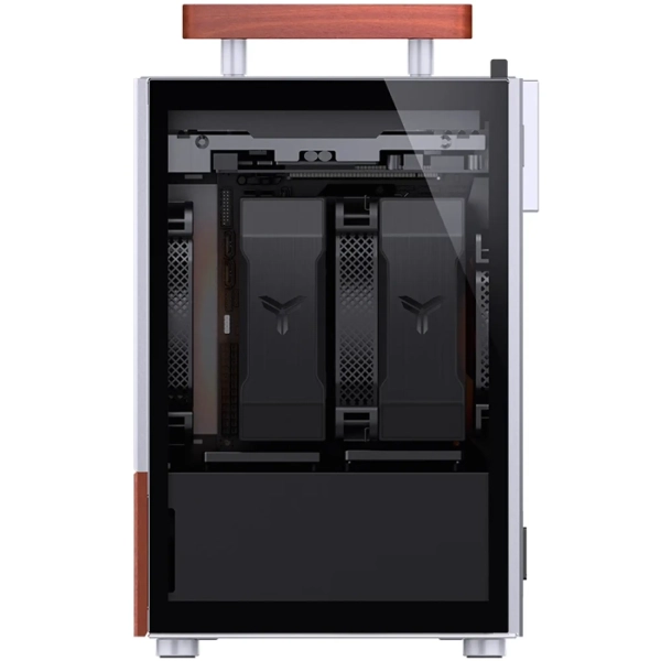 Корпус Jonsbo T6 Silver – это элегантное решение для создания компактного, но функционального ПК формата mini-ITX. В его конструкции сочетаются алюминий, сталь и натуральное дерево, благодаря чему он гармонично вписывается как в современный офис, так и в домашний интерьер. Размеры 185×223×332 мм позволяют установить систему на рабочий стол или даже в ограниченное пространство, не жертвуя возможностями для апгрейда и эффективного охлаждения.