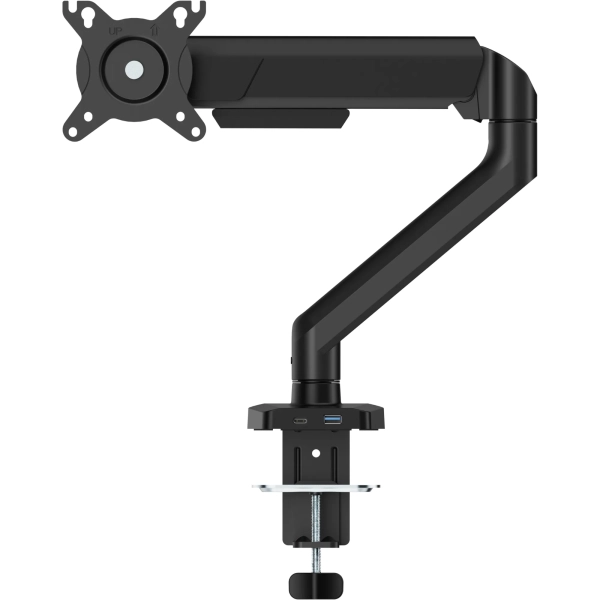 Кронштейн выполнен из высококачественных материалов — стали, алюминия и пластика, что обеспечивает не только долговечность и надежность конструкции, но и стильный современный вид. Он подходит для установки на столешницы толщиной от 10 до 80 мм, что делает его универсальным решением для офисов и домашних рабочих мест. Кроме того, наличие встроенных USB-портов добавляет удобства, позволяя подключать различные устройства и аксессуары, такие как мыши, клавиатуры или флеш-накопители, непосредственно к кронштейну.