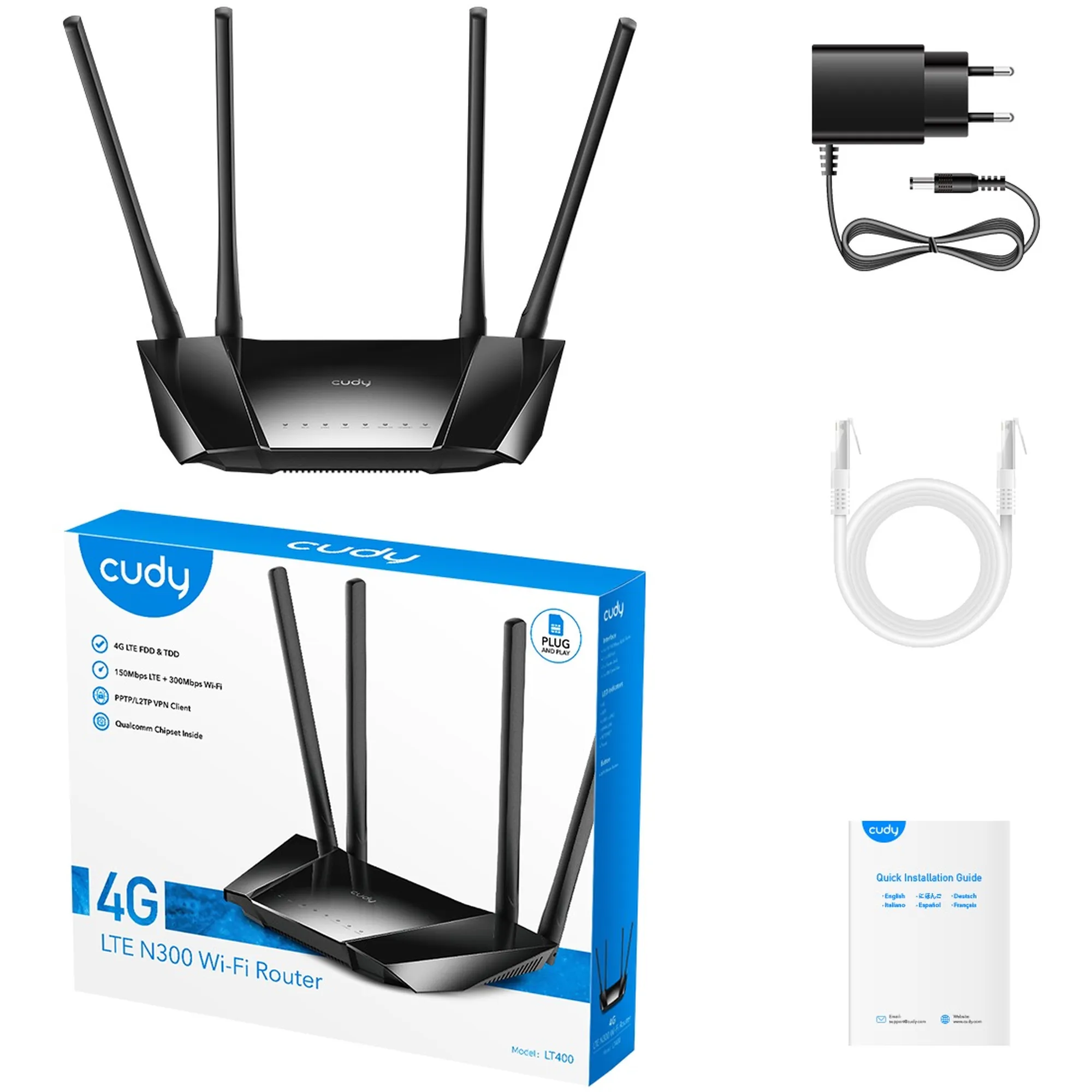 Универсальность Cudy LT400 2.0 подчеркивается наличием четырех Ethernet портов с пропускной способностью 10/100 Мбит/с, что позволяет подключить несколько устройств одновременно. Простая установка в формате «plug-and-play» исключает необходимость в сложной настройке, делая его доступным даже для пользователей без технического опыта. Поддержка VPN и базовых сетевых функций расширяет возможности маршрутизатора, позволяя использовать его для самых разных задач — от домашней сети до систем видеонаблюдения и временных выставок.