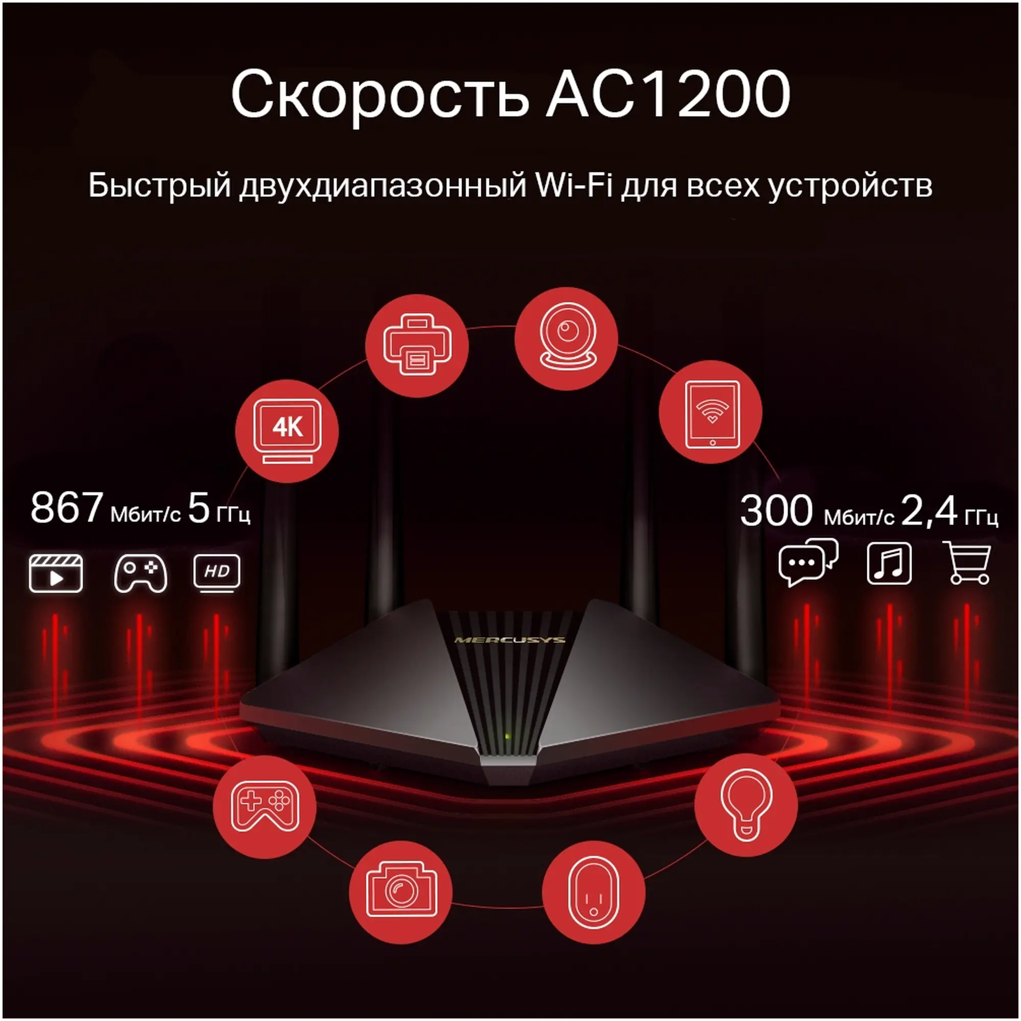 Маршрутизатор Mercusys MR30G – это высокоскоростное решение для создания надежной домашней сети с поддержкой стандарта Wi-Fi 5 (802.11ac). Благодаря скорости передачи данных до 1200 Мбит/с, устройство обеспечивает стабильное соединение для потокового видео в формате 4K, онлайн-игр и работы с большими файлами. Двухдиапазонная работа в частотах 2,4 ГГц и 5 ГГц позволяет оптимально распределять нагрузку и уменьшать помехи, гарантируя высокую производительность даже при подключении множества устройств.