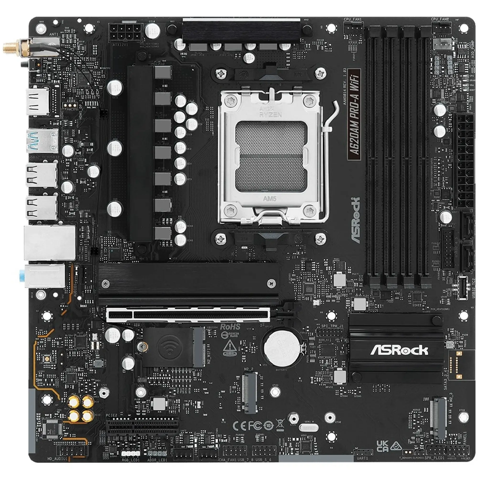 Материнская плата ASRock A620AM PRO-A WIFI — это оптимальное решение для современных домашних и офисных систем на базе процессоров AMD с разъёмом AM5. Благодаря форм-фактору Micro-ATX, она легко вписывается в компактные корпуса, сохраняя при этом высокую функциональность и удобство размещения компонентов. Пассивная система охлаждения обеспечивает стабильную работу без лишнего шума, что особенно важно в тихих рабочих или домашних условиях.